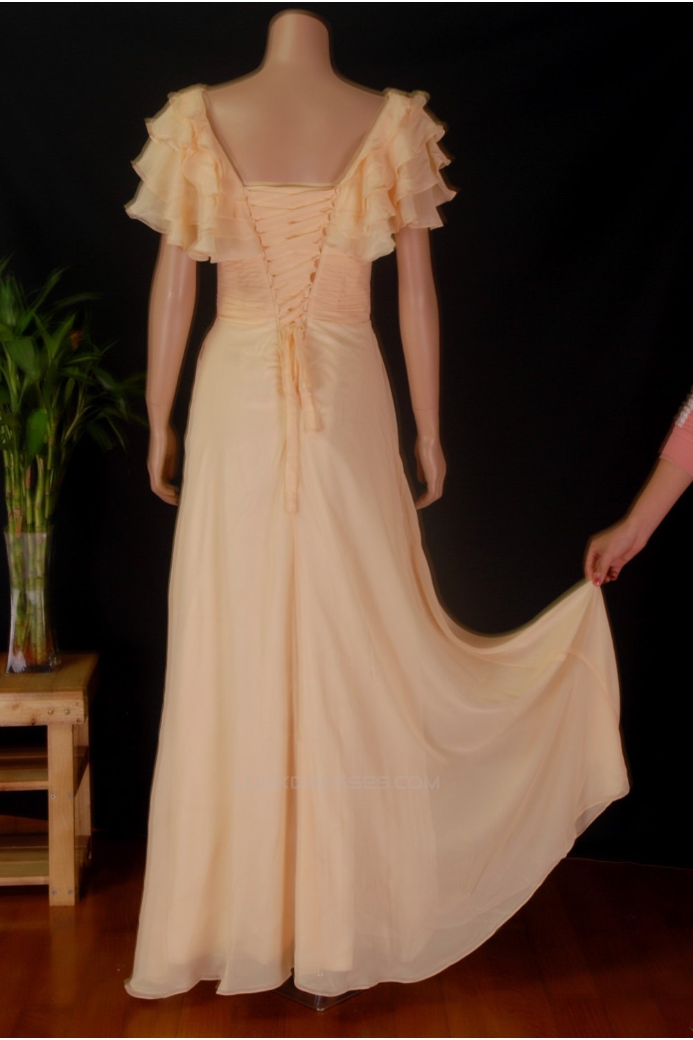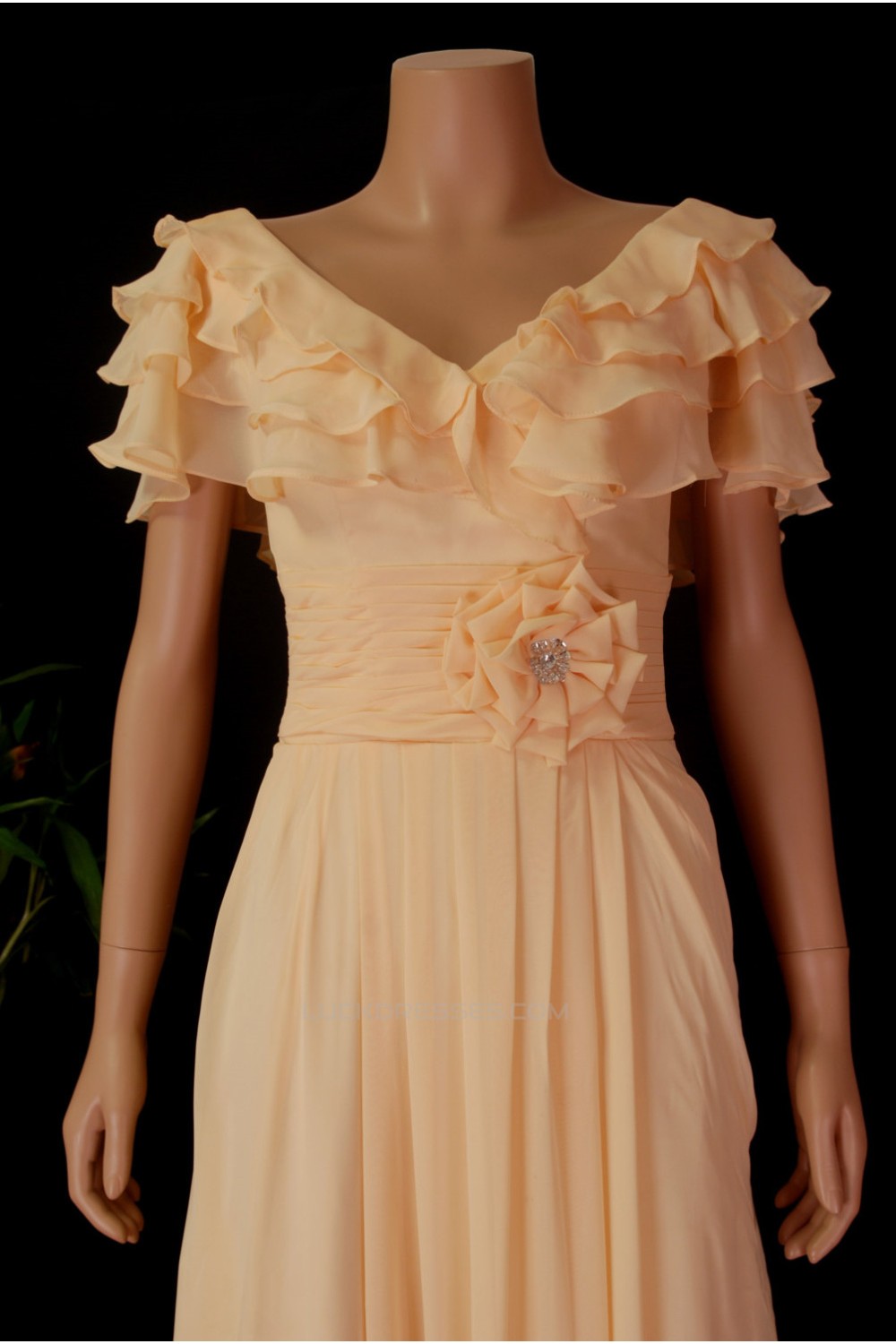 A-Line V-Neck Long Yellow Chiffon Bridesmaid Dresses/Wedding Party Dresses BD010690