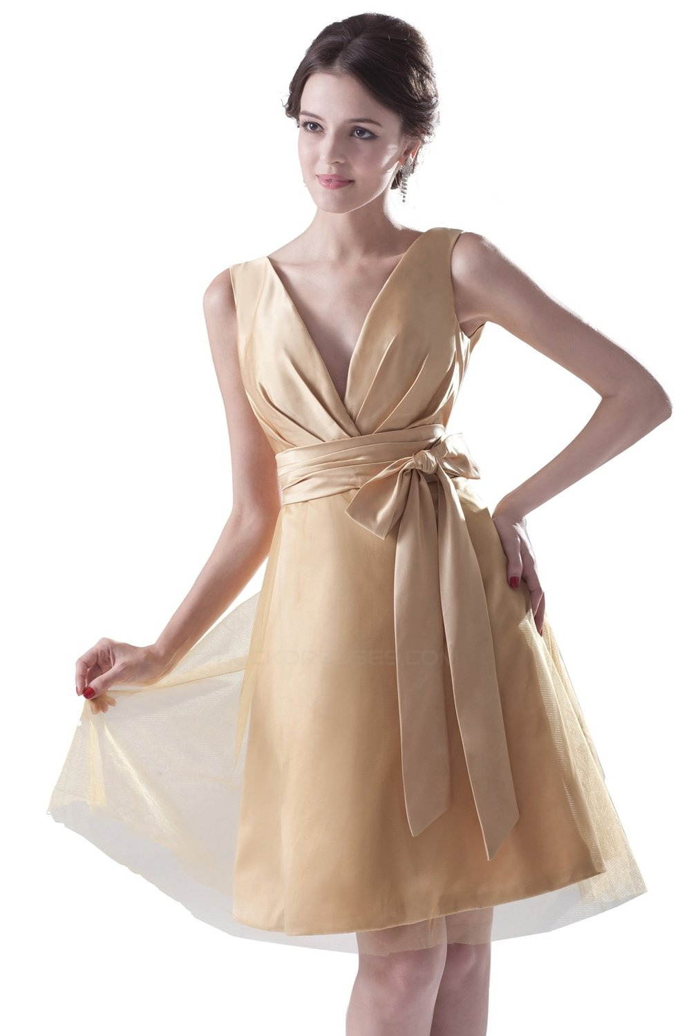 A-Line V-Neck Short Gold Bridesmaid Dresses/Wedding Party Dresses BD010031