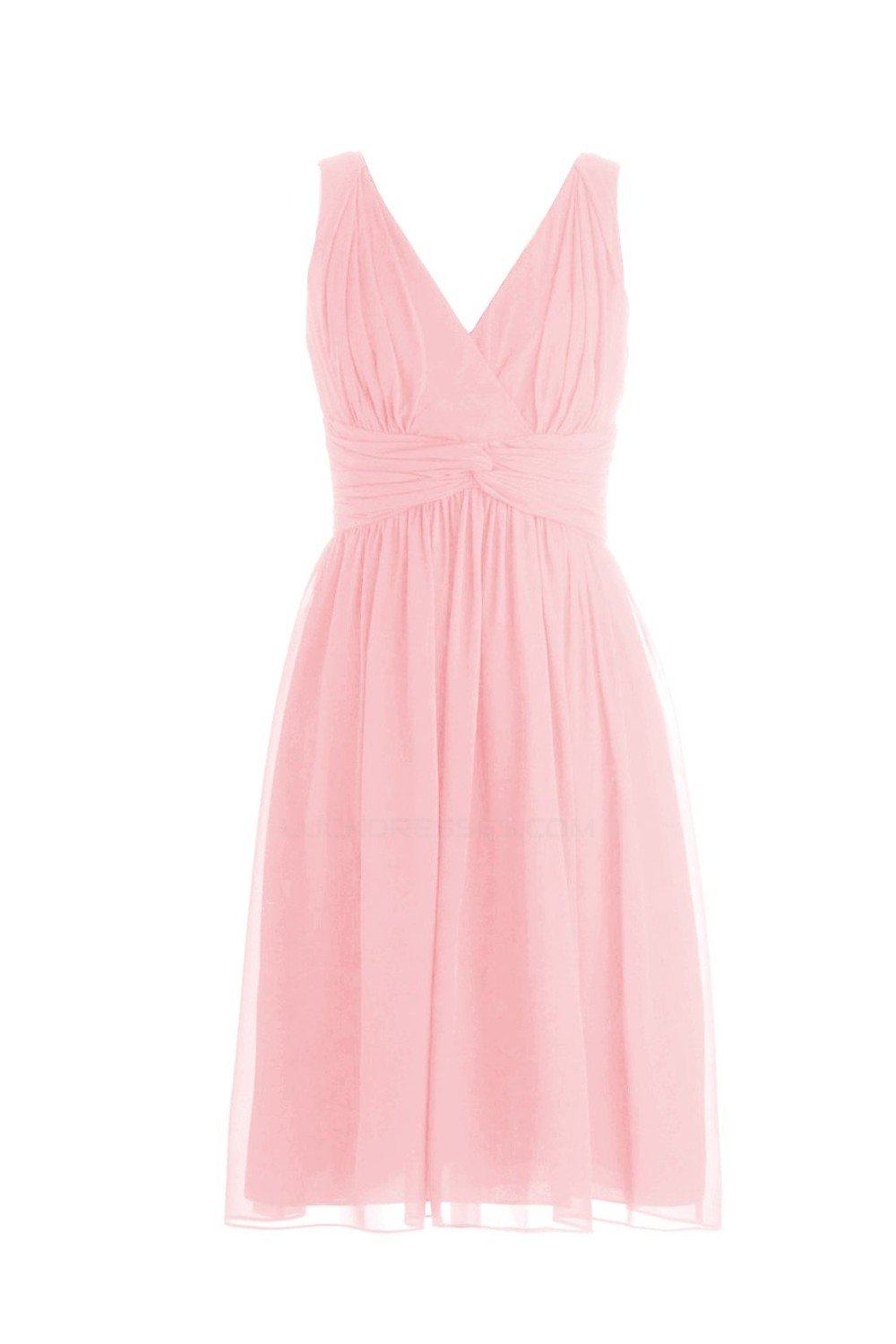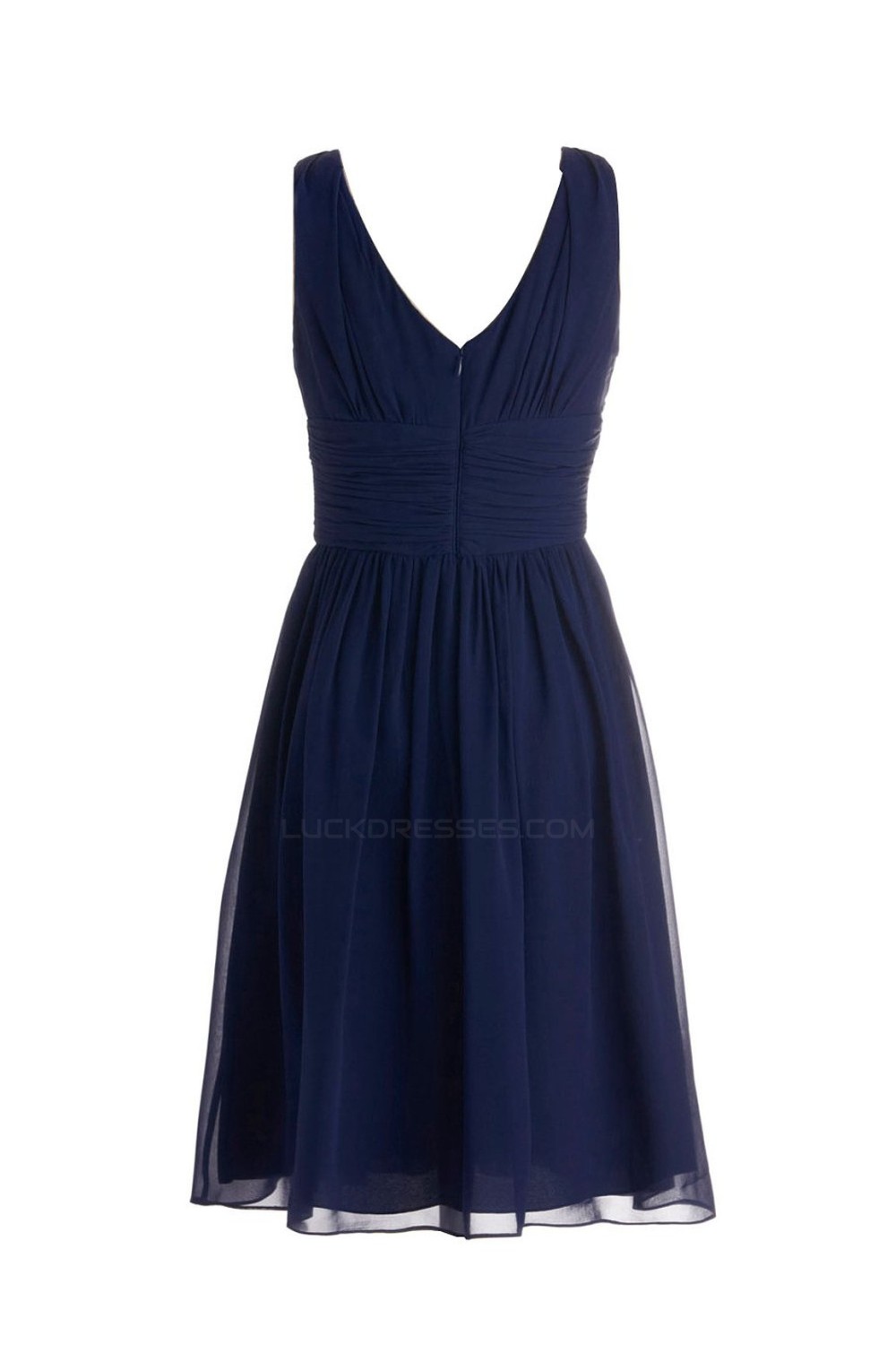 A-Line V-Neck Short Navy Blue Chiffon Bridesmaid Dresses/Wedding Party Dresses BD010093