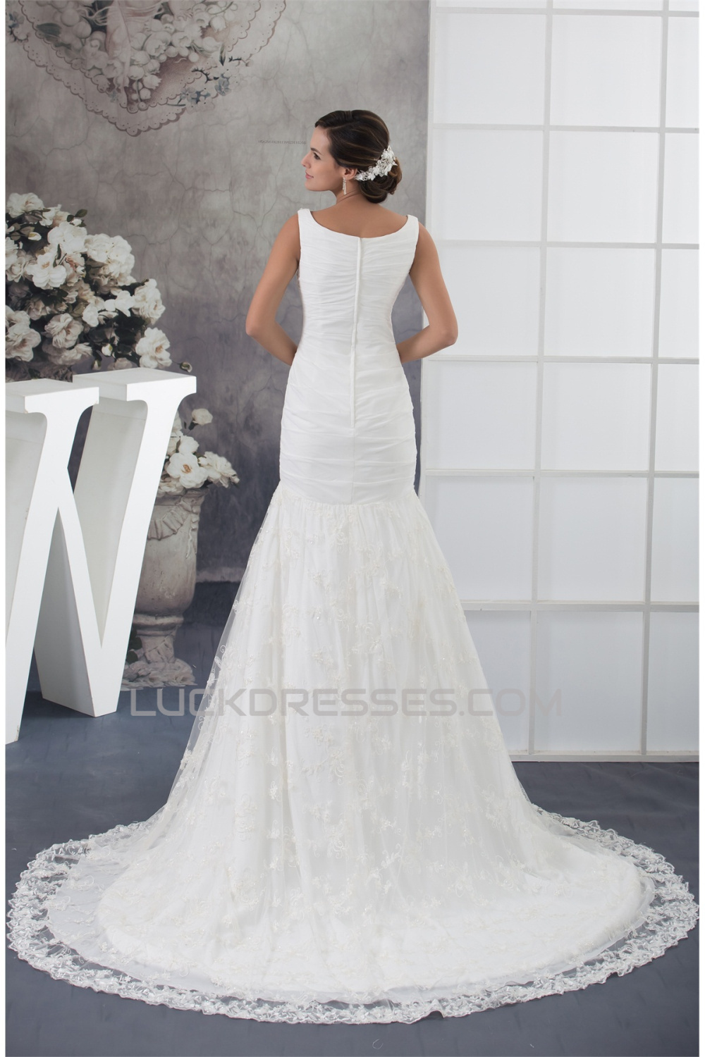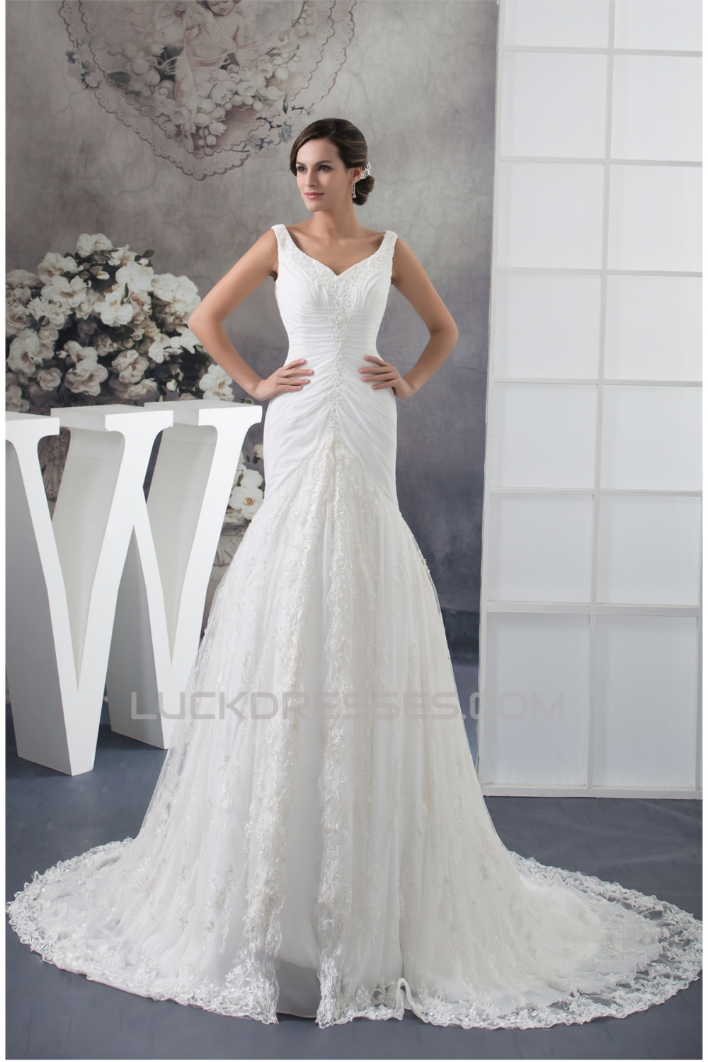 A-Line V-Neck Sleeveless Chiffon Satin Lace Best Wedding Dresses 2030358