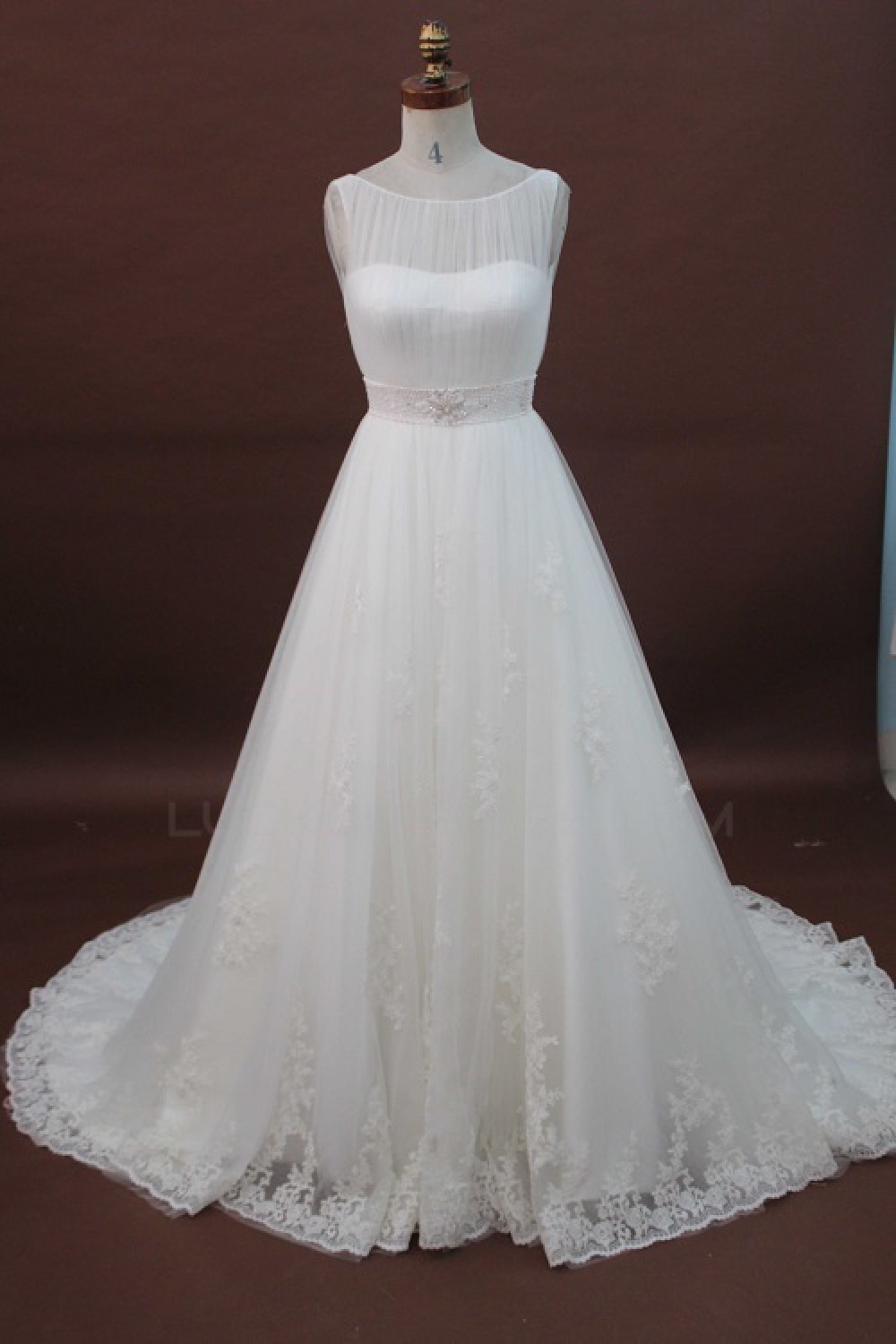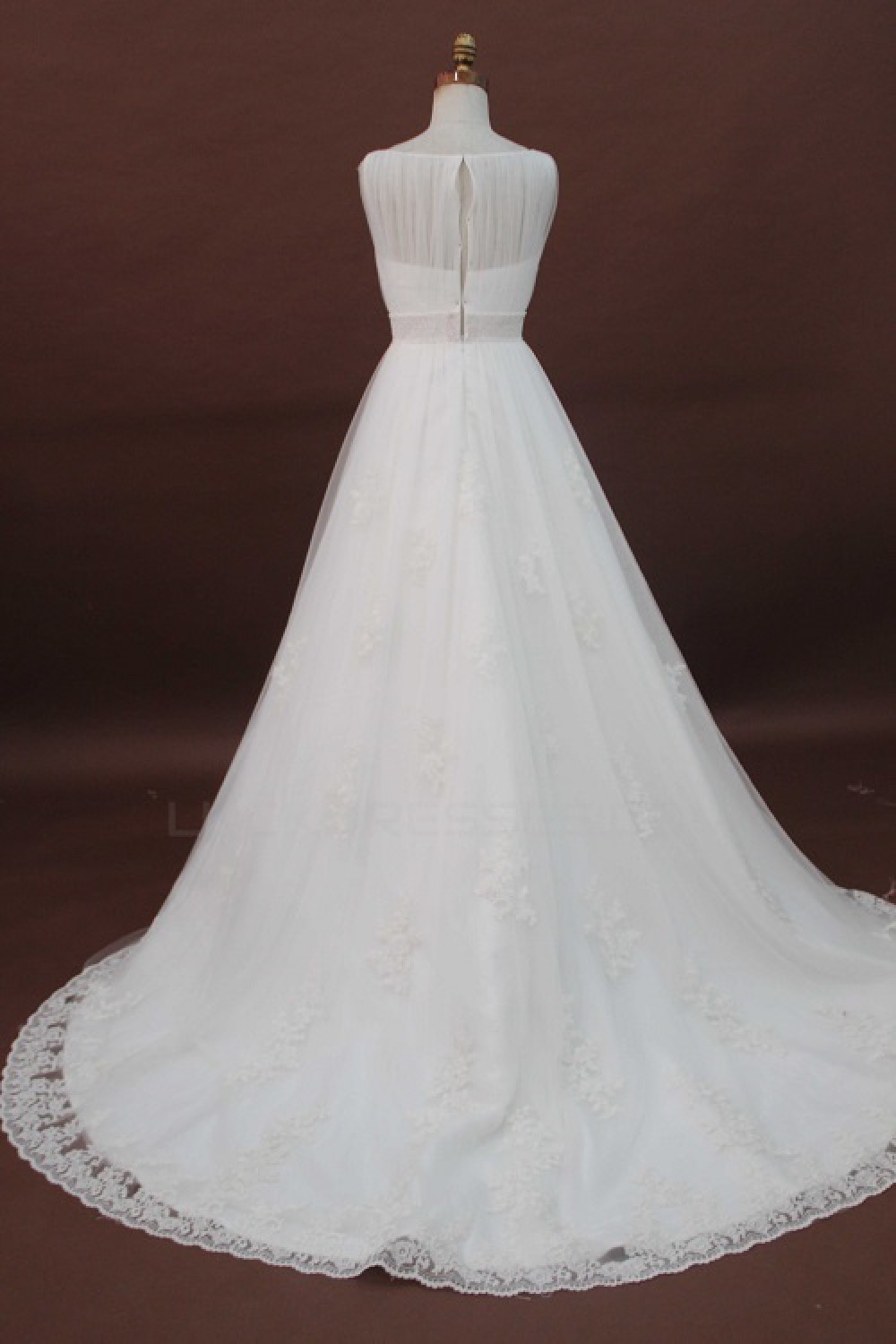 -65% A-line Chapel Train Beaded Lace Bridal Wedding Dresses WD010178