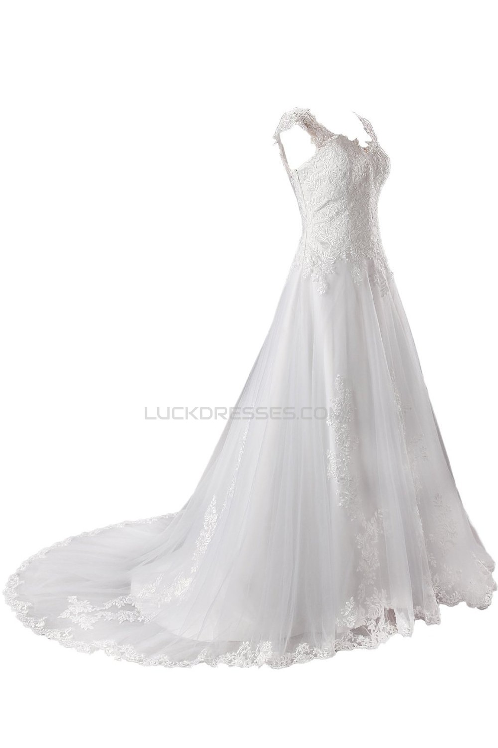 A-line Chapel Train Lace Wedding Dresses WD010028