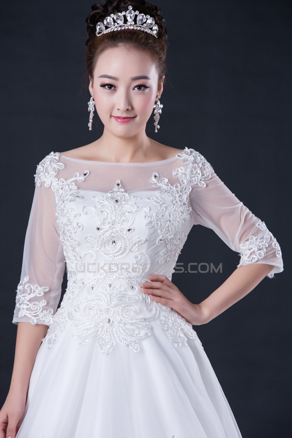 -60% A-line Half Sleeves Beaded Lace Bridal Wedding Dresses WD010413
