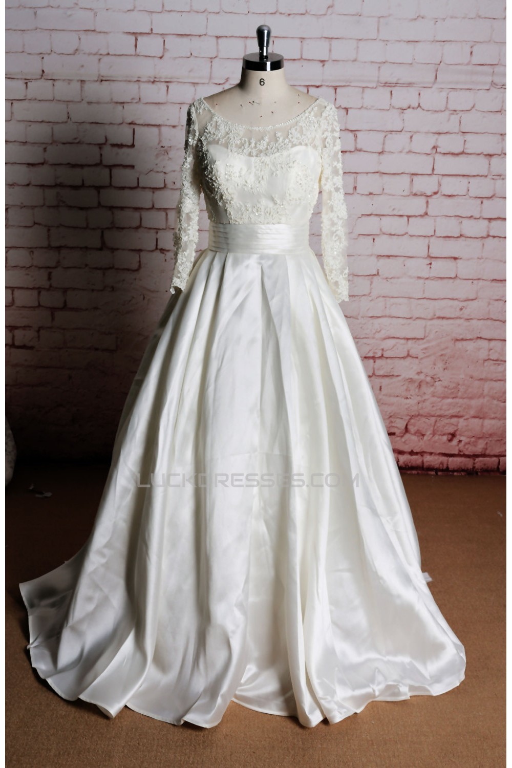 A-line Long Sleeves Lace Bridal Wedding Dresses WD010652
