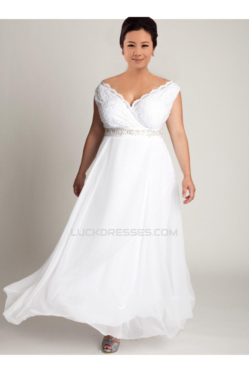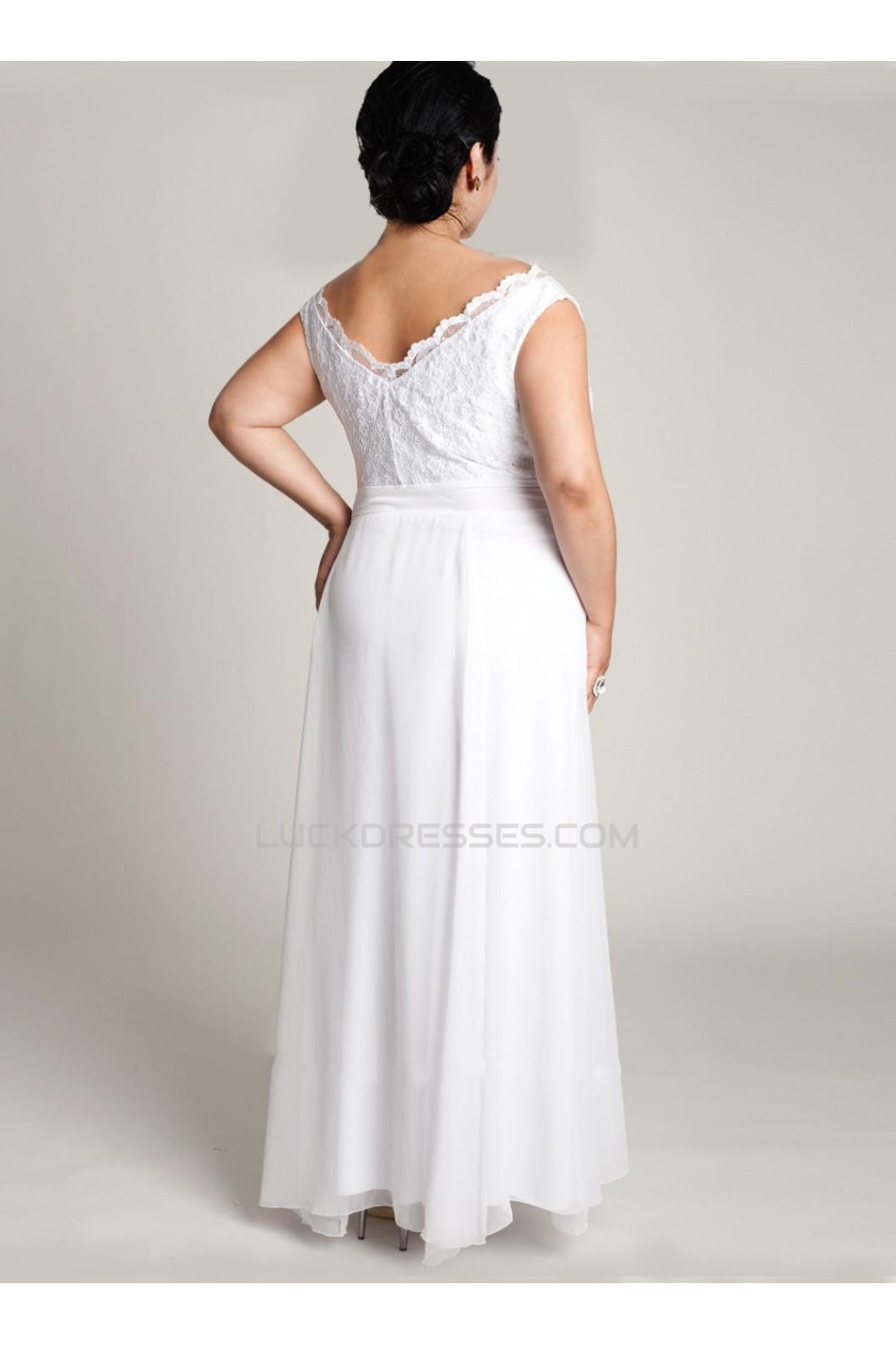 A-line Off the Shoulder Lace and Chiffon Plus Size Bridal Wedding Dresses WD010309