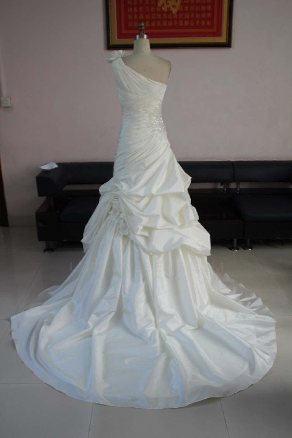 A-line One Shoulder Chapel Train Bridal Wedding Dresses WD010084