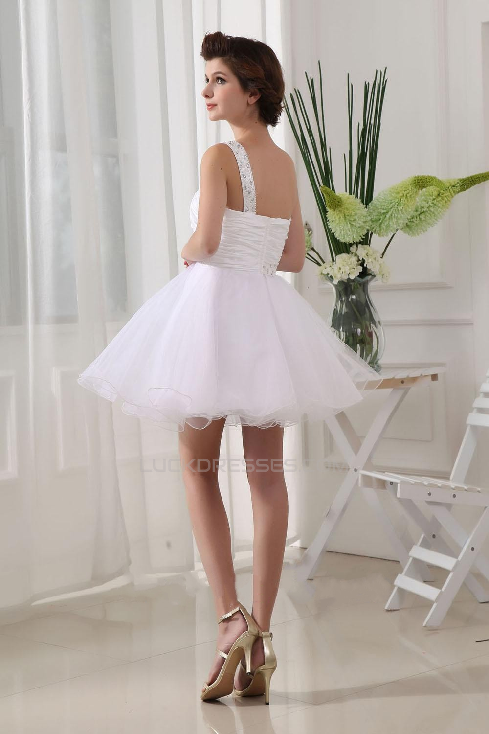 A-line One Shoulder Short/Mini Beaded Bridal Wedding Dresses WD010282