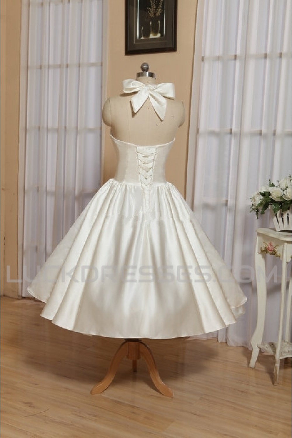 A-line Short Halter Bowknot Bridal Wedding Dresses WD010546