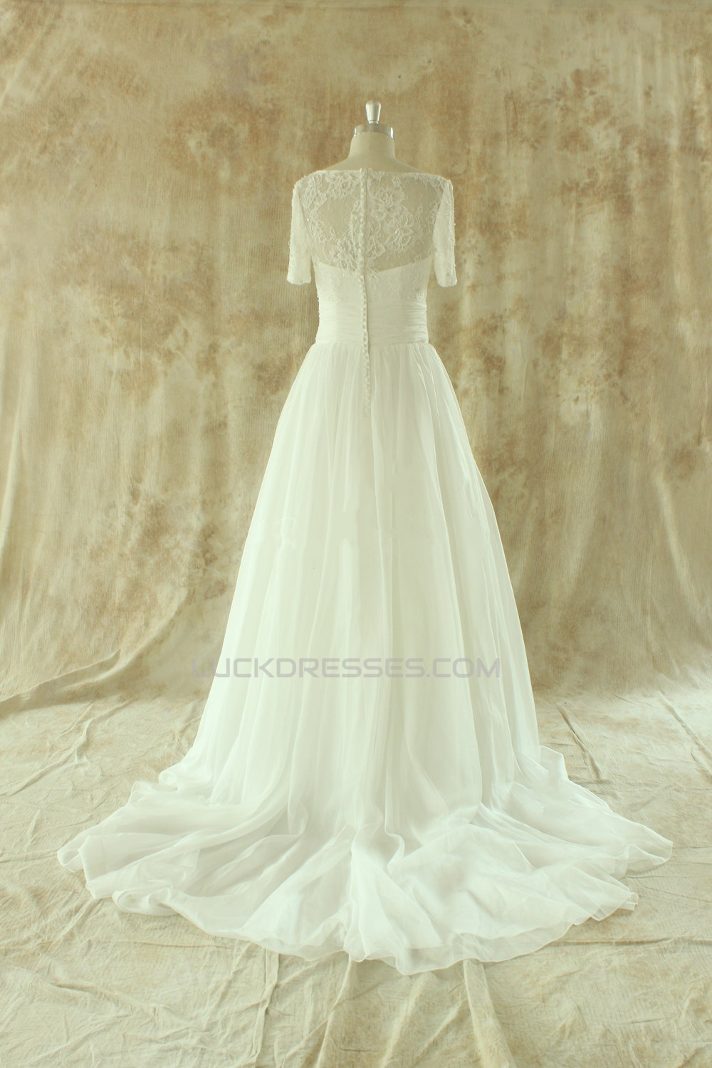 A-line Short Sleeves Chiffon and Lace Bridal Wedding Dresses WD010526