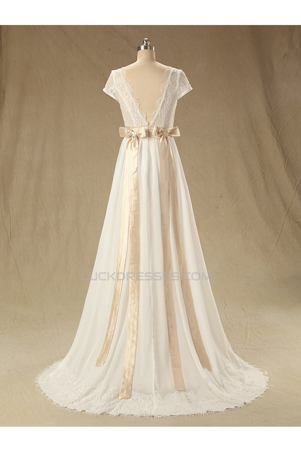 A-line Short Sleeves Chiffon and Lace Bridal Wedding Dresses WD010608