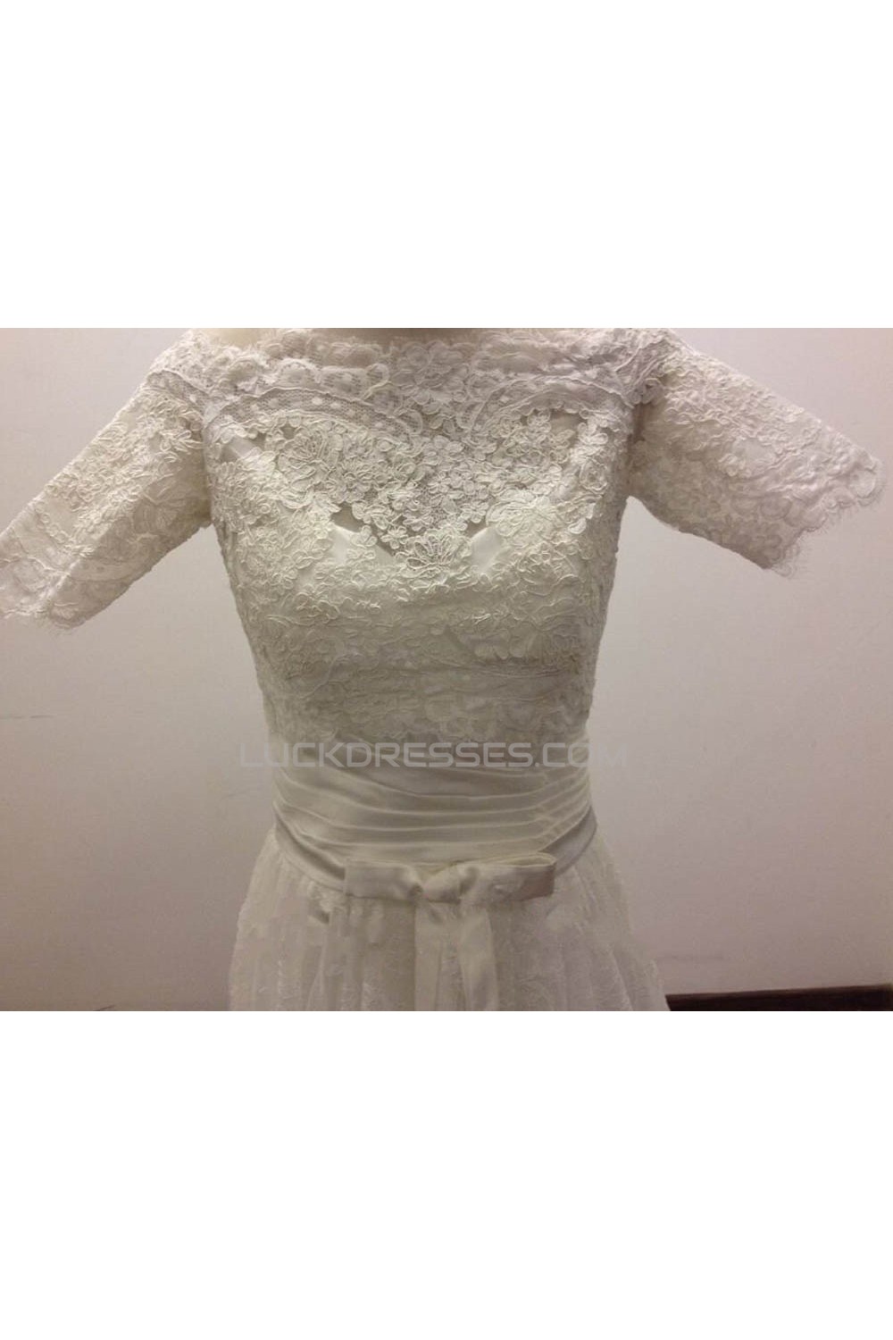 A-line Short Sleeves Lace Bridal Wedding Dresses WD010817