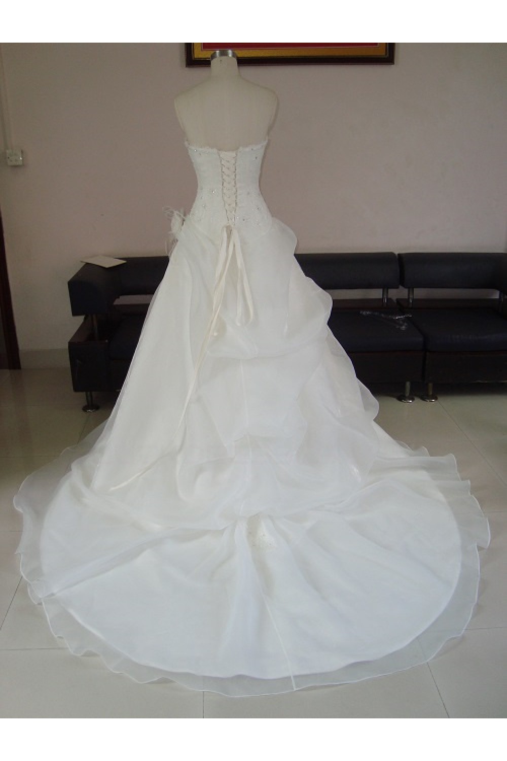 A-line Strapless Chapel Train Beaded Bridal Wedding Dresses WD010058