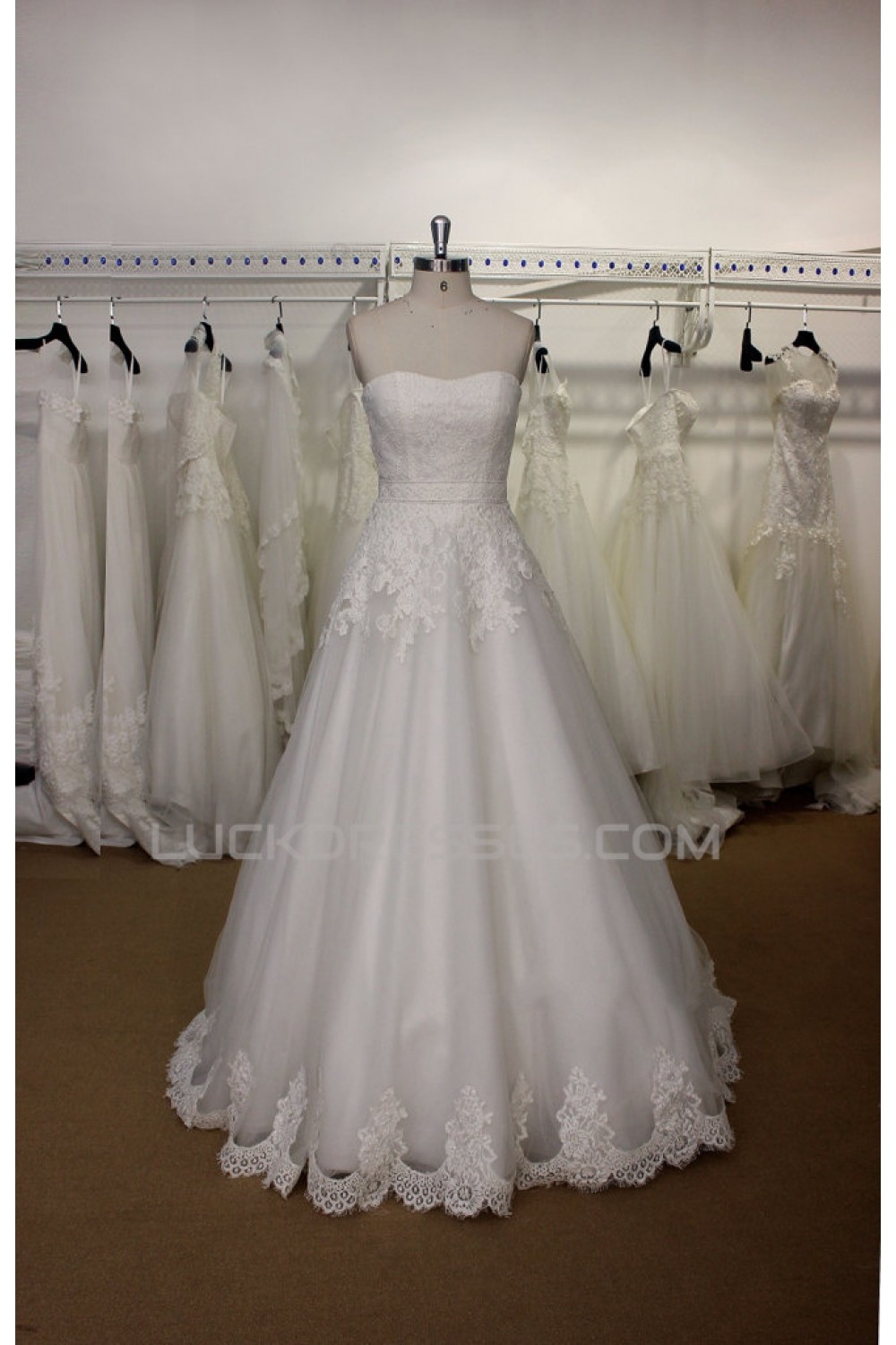 -60% A-line Strapless Lace Bridal Gown Wedding Dress WD010729