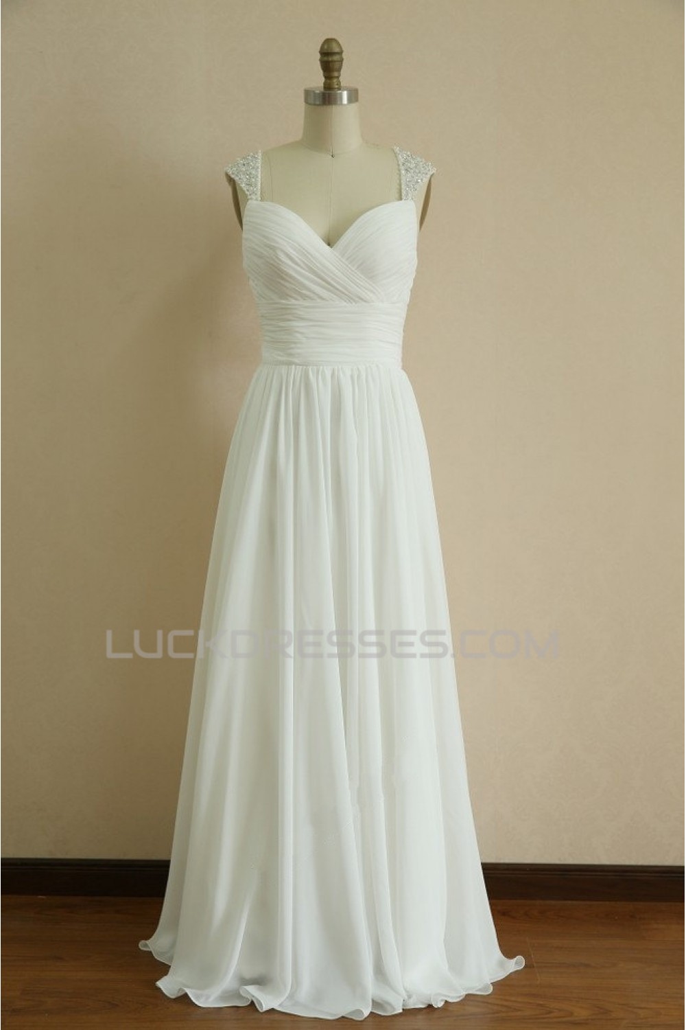 A-line Straps Beaded Chiffon Bridal Wedding Dresses WD010803