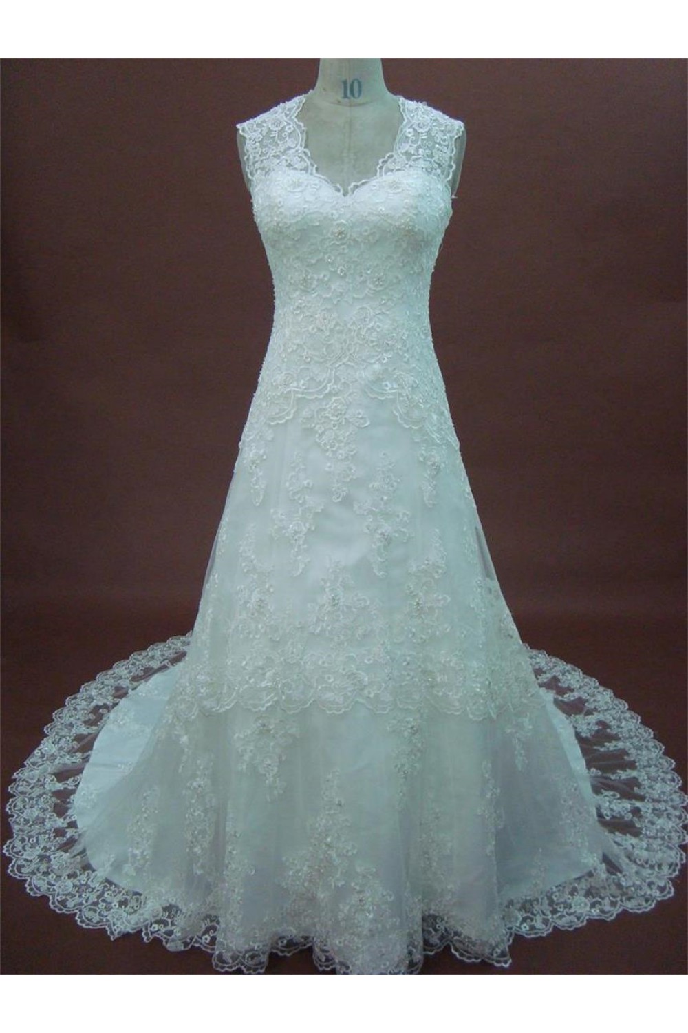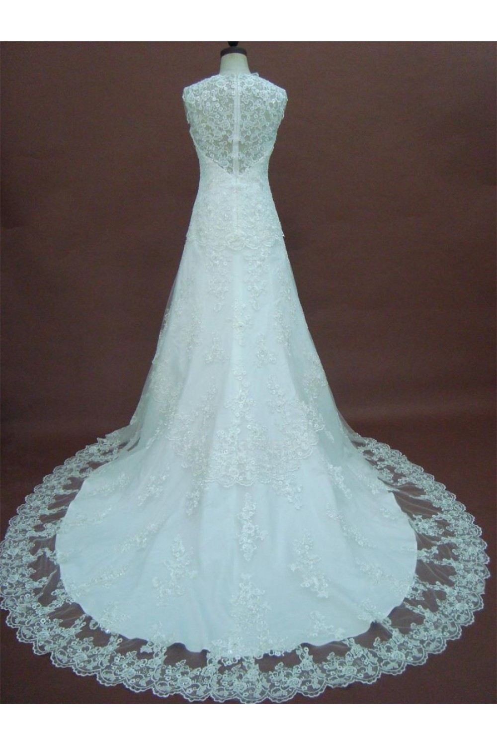-65% A-line V-neck Chapel Train Lace Bridal Wedding Dresses WD010158