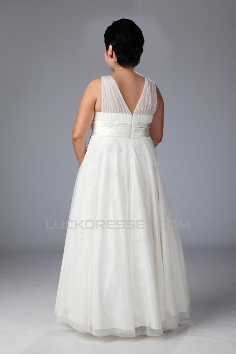 A-line V-neck Floor Length Plus Size Bridal Gown WD010274
