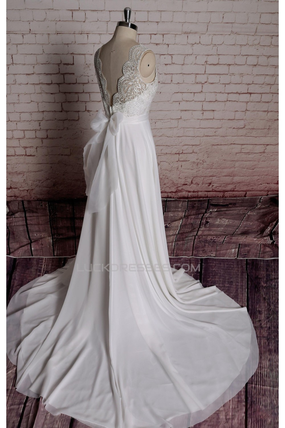 -60% A-line V-neck Lace Bowknot Bridal Wedding Dresses WD010690