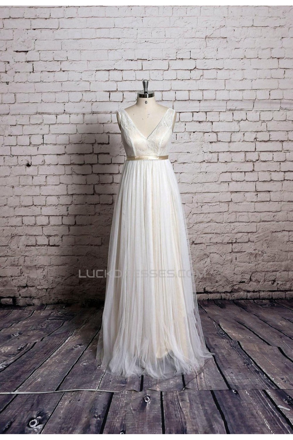 -60% A-line V-neck Lace Bridal Gown Wedding Dress WD010717