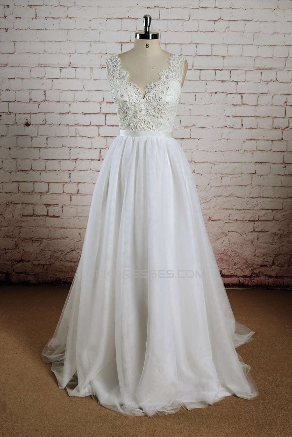-60% A-line V-neck Lace Bridal Wedding Dresses WD010674