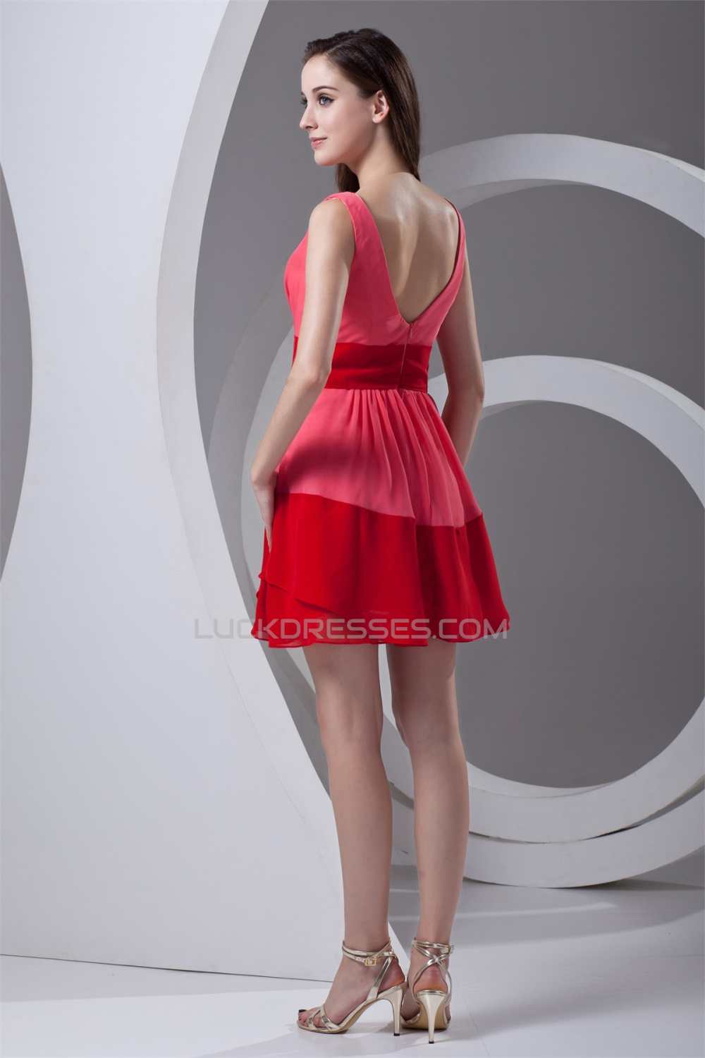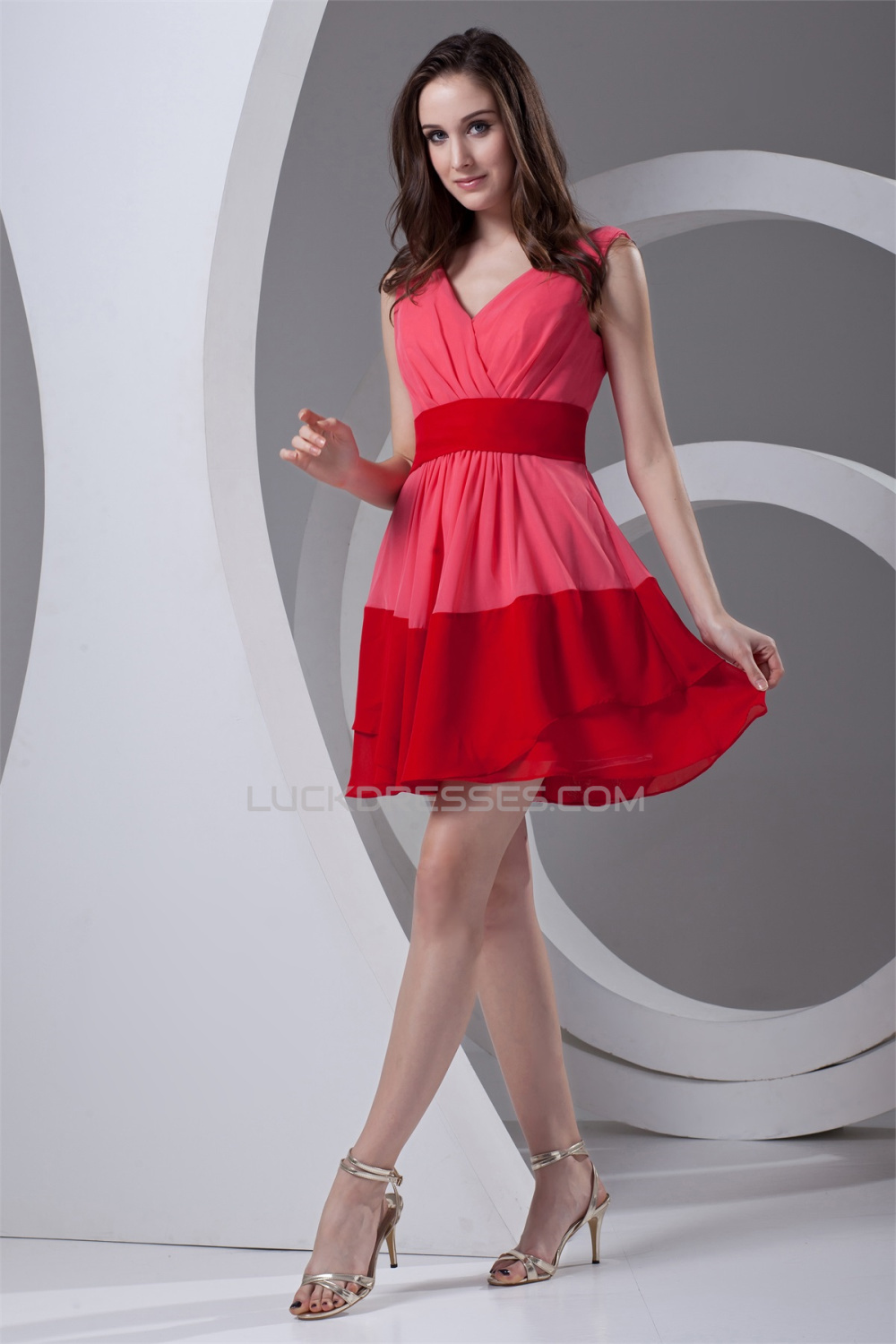 Affordable Sheath/Column V-Neck Short Chiffon Bridesmaid Dresses 02010475