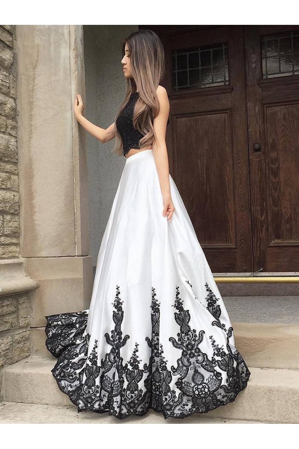 Affordable Two Pieces Lace Long Prom Dresses Evening Party Gowns with Beads 601116
