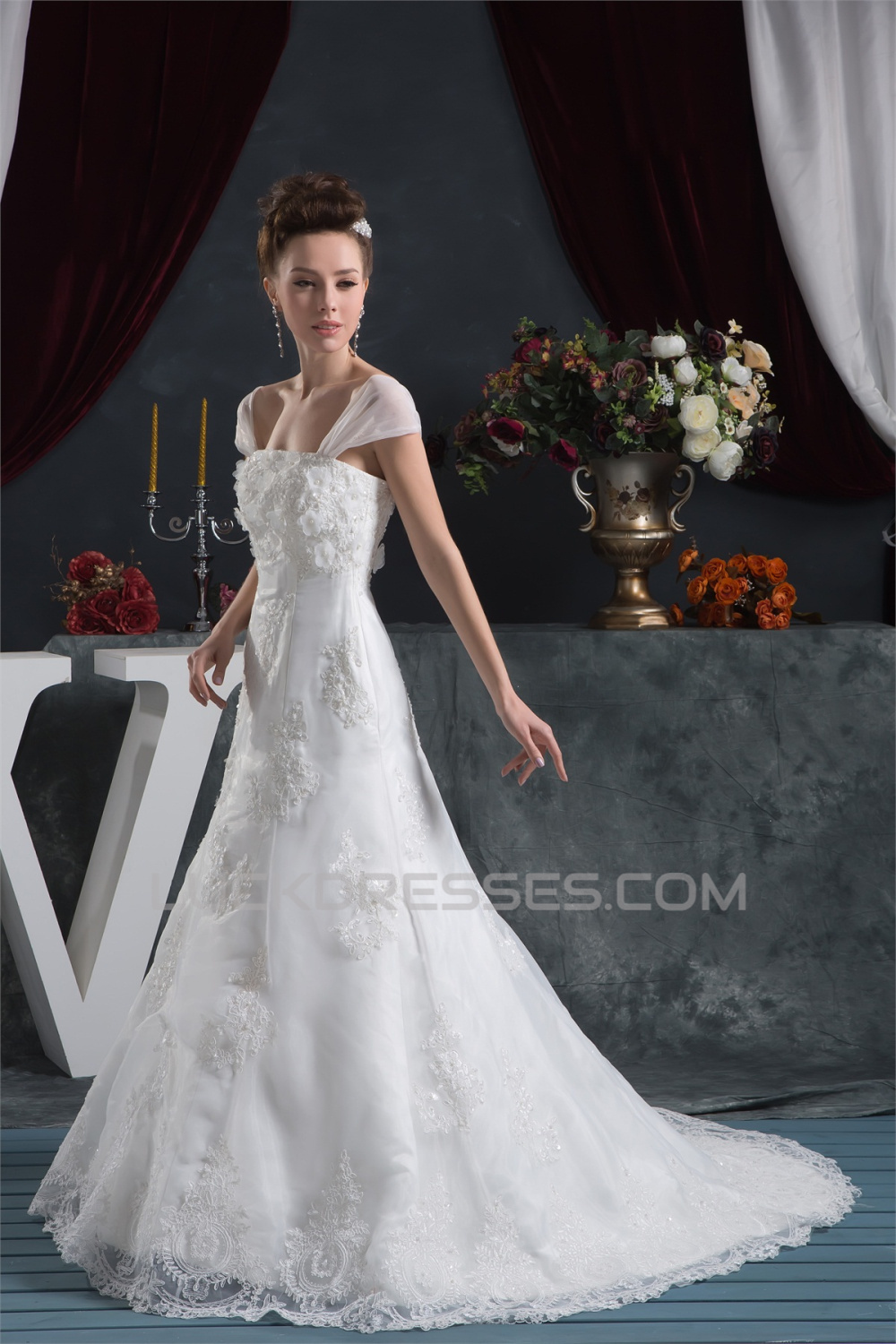 -50% Amazing A-Line Satin Lace Straps Wedding Dresses 2030569