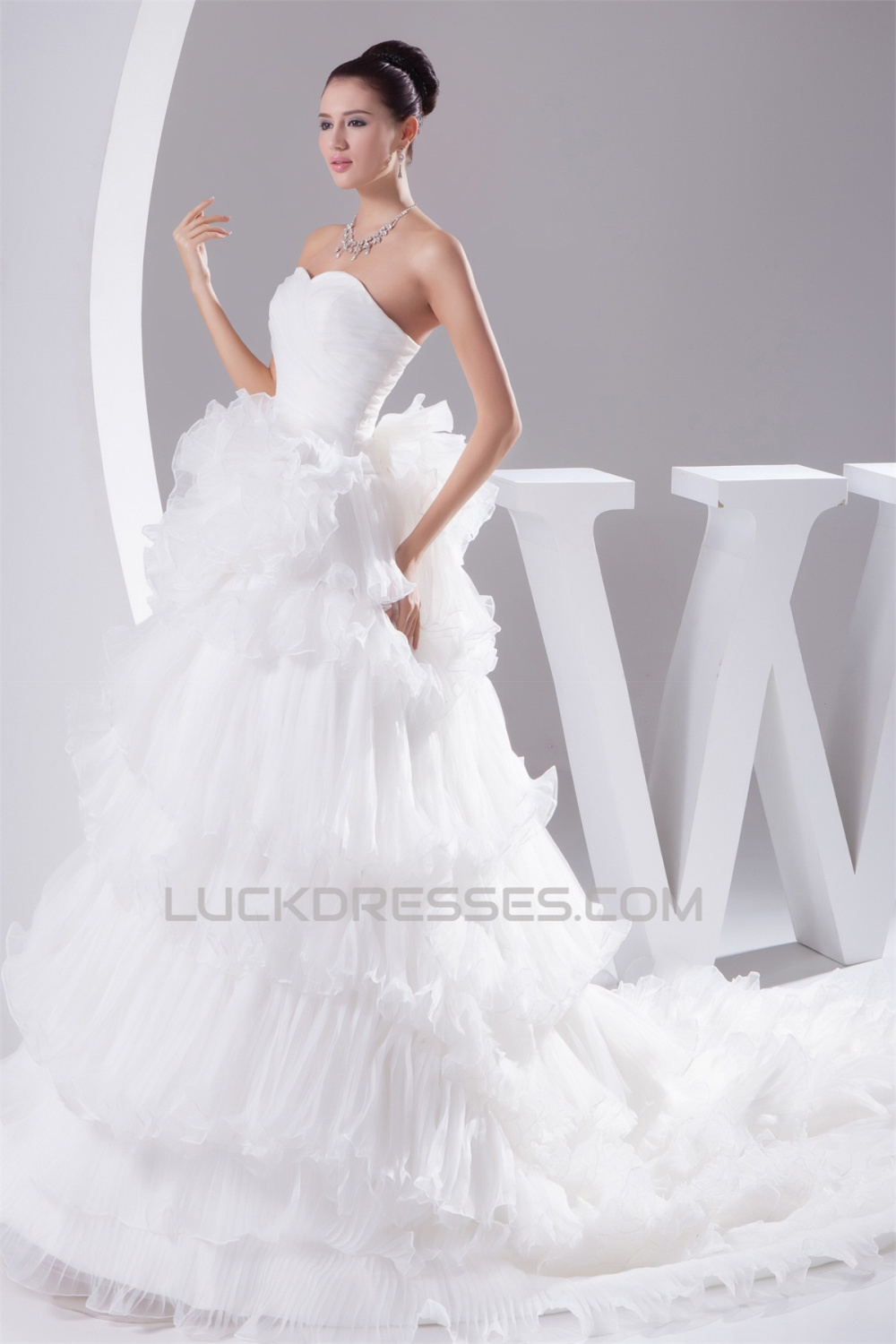-50% Amazing Ball Gown Sweetheart Satin Organza Ruched Wedding Dresses 2030048