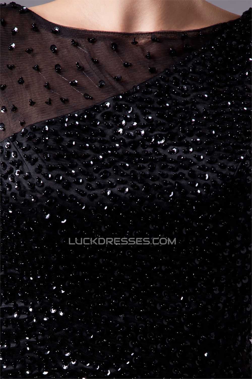 Amazing Long Sleeves Fine Netting Beading Bateau Little Black Dresses 02021283
