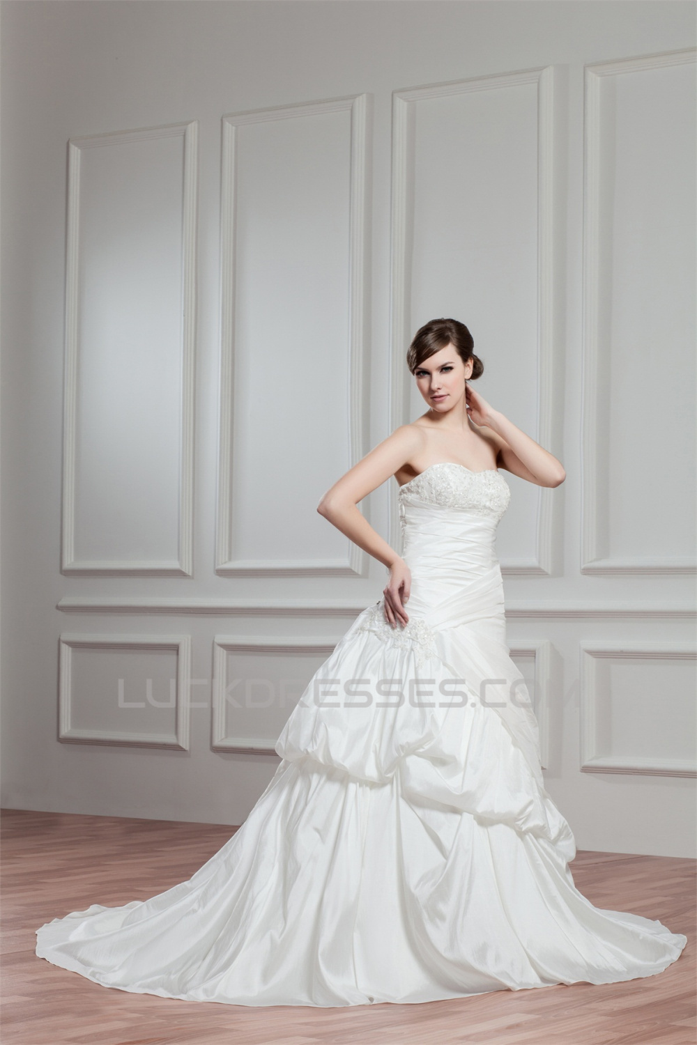 -50% Amazing Sleeveless A-Line Taffeta Sweetheart Wedding Dresses 2030581