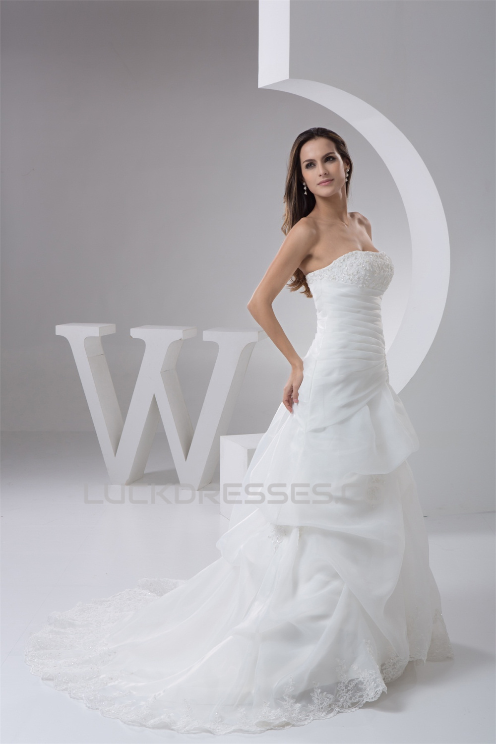 Amazing Strapless A-Line Sleeveless Satin Lace Wedding Dresses 2030589