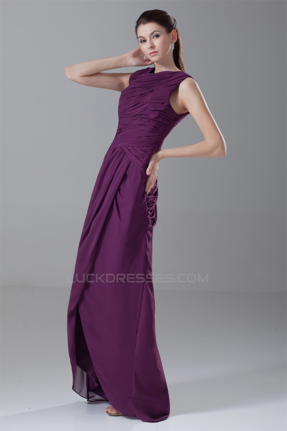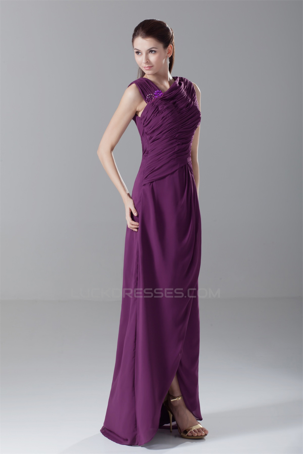 Asymmetrical Sheath/Column Long Chiffon Grape Mother of the Bride Dresses 2040166