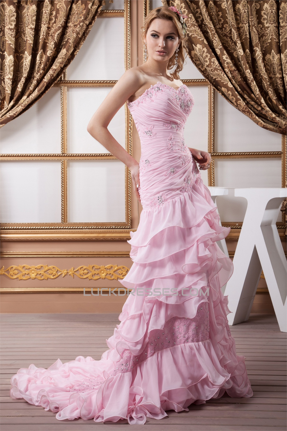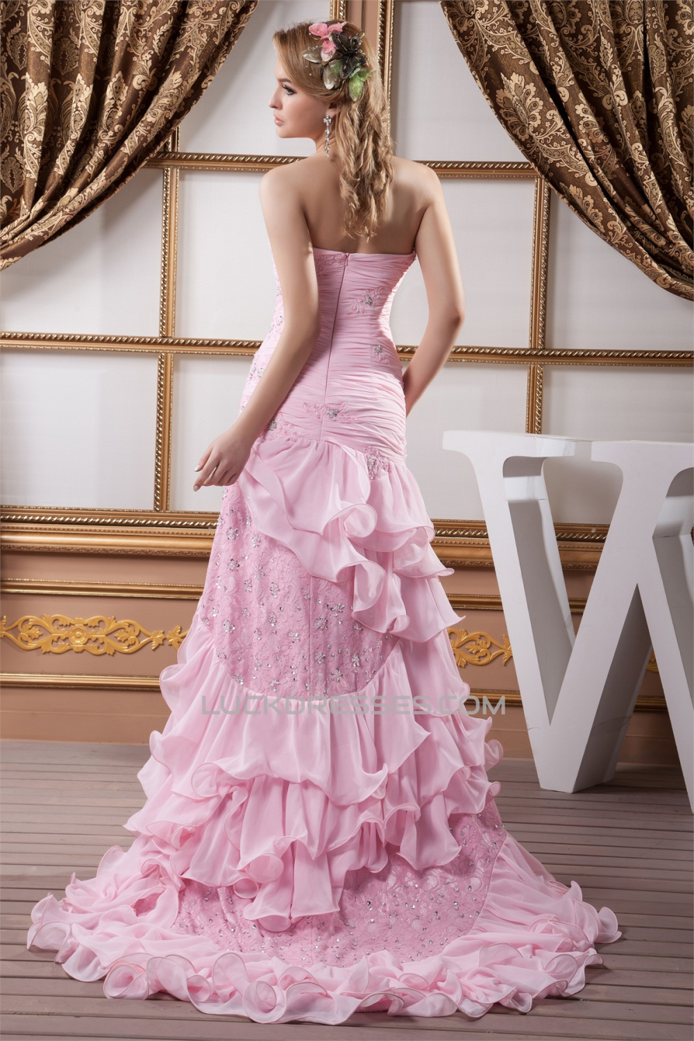 Asymmetrical Sleeveless Ruffles Sweetheart Lace Chiffon Prom/Formal Evening Dresses 02020468