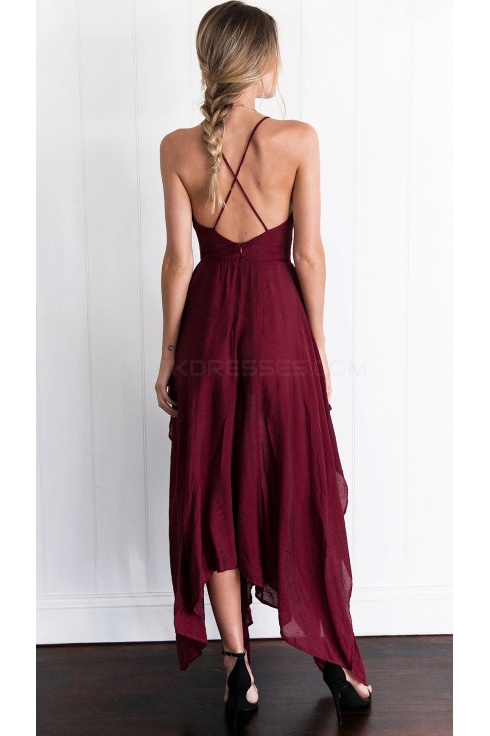 Asymmetrical Spaghetti Straps V-Neck Chiffon Prom Formal Evening Party Dresses 3021176