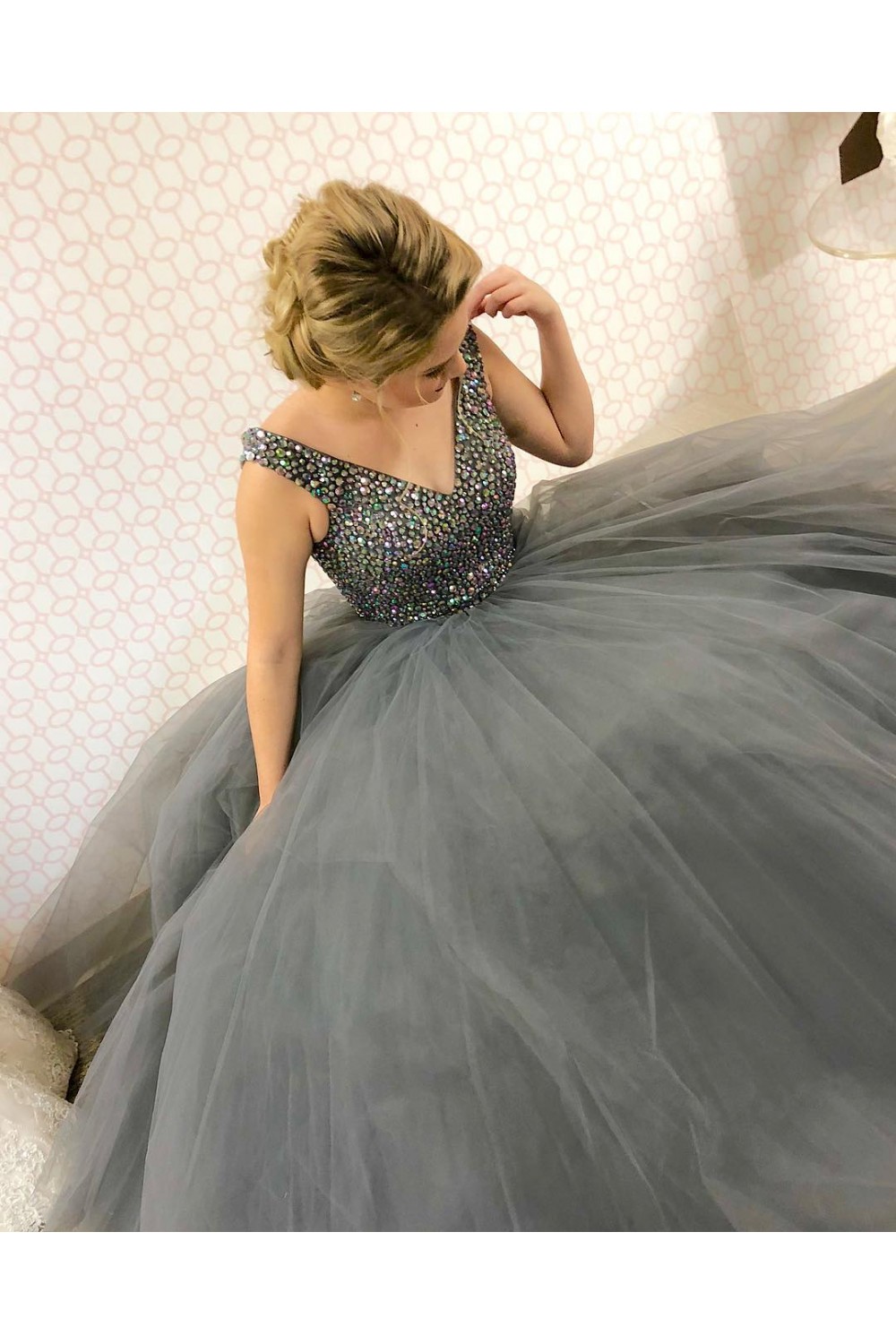 Ball Gown Beaded V-Neck Long Prom Dresses Formal Evening Dresses 601031