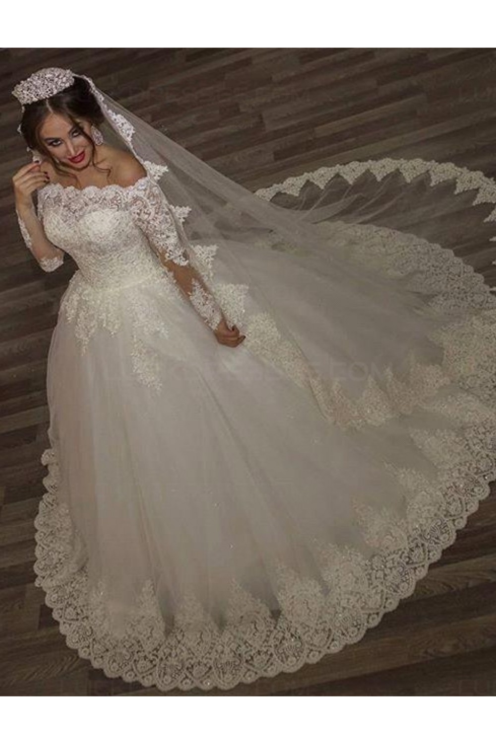 -62% Ball Gown Lace Long Sleeves Off-the-Shoulder Wedding Dresses Bridal Gowns 3030310