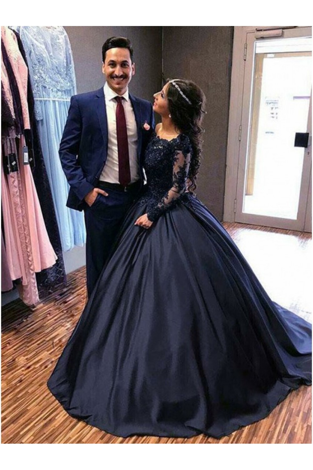 Ball Gown Lace Long Sleeves Prom Dresses Formal Evening Gowns 601886