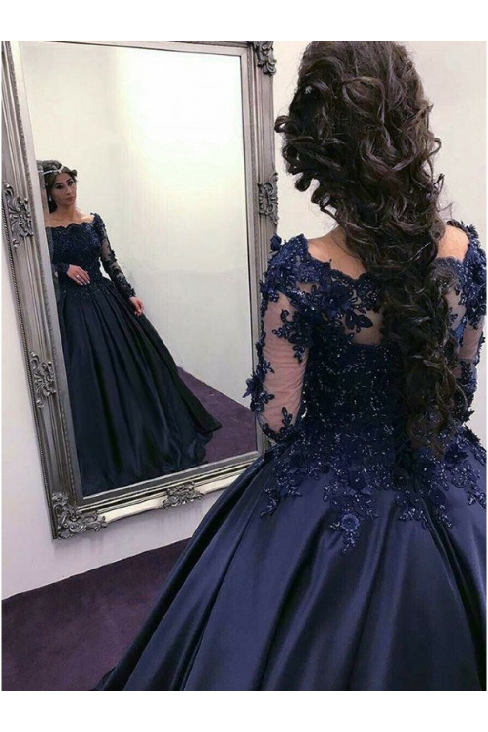 -56% Ball Gown Lace Long Sleeves Prom Dresses Formal Evening Gowns 601886