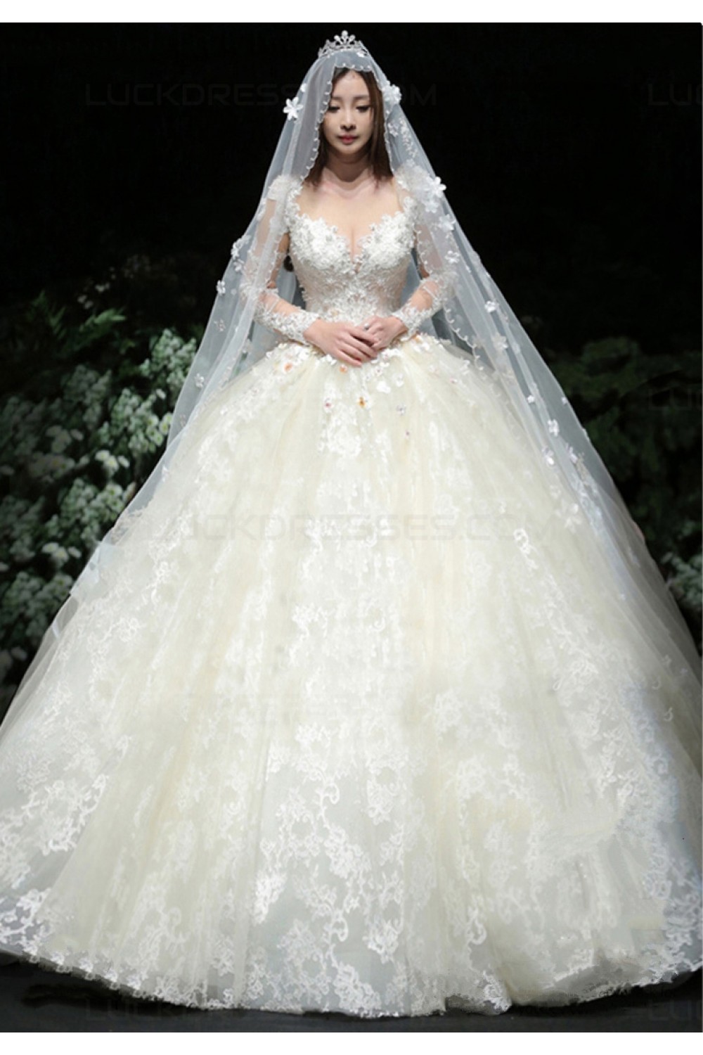 -62% Ball Gown Lace Long Sleeves V-Neck Wedding Dresses Bridal Gowns 3030231
