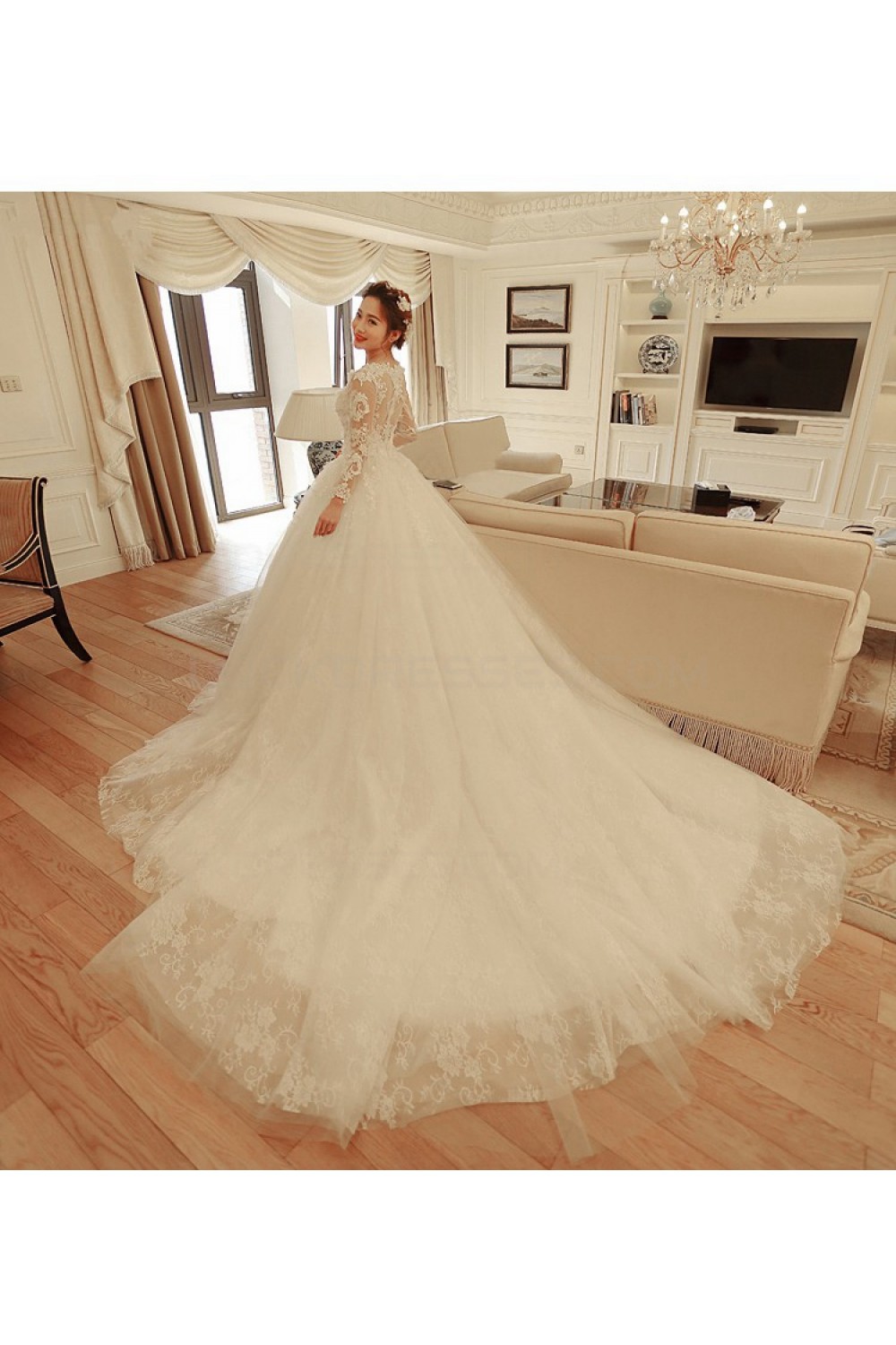 Ball Gown Lace Long Sleeves V-Neck Wedding Dresses Bridal Gowns 3030231