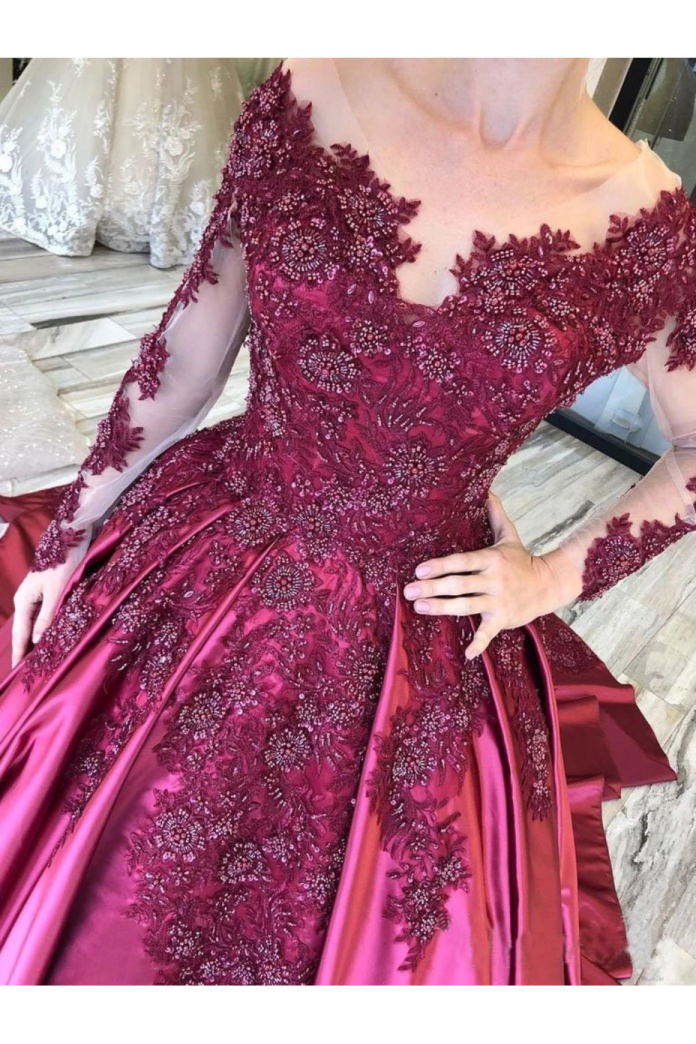Ball Gown Long Sleeves Lace Long Prom Dress Formal Evening Dresses 601513