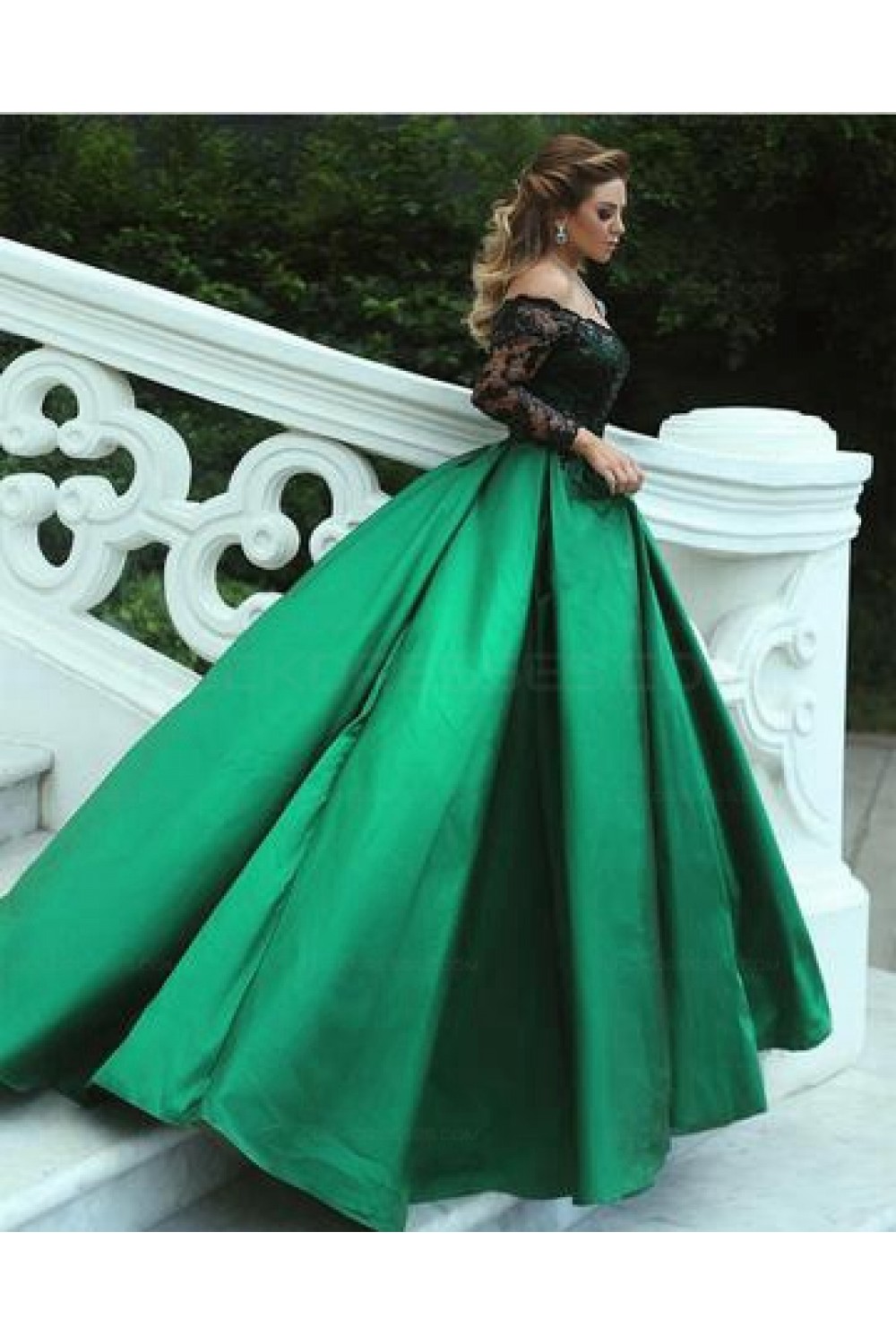 Ball Gown Long Sleeves Lace Satin Prom Evening Formal Dresses 3021566