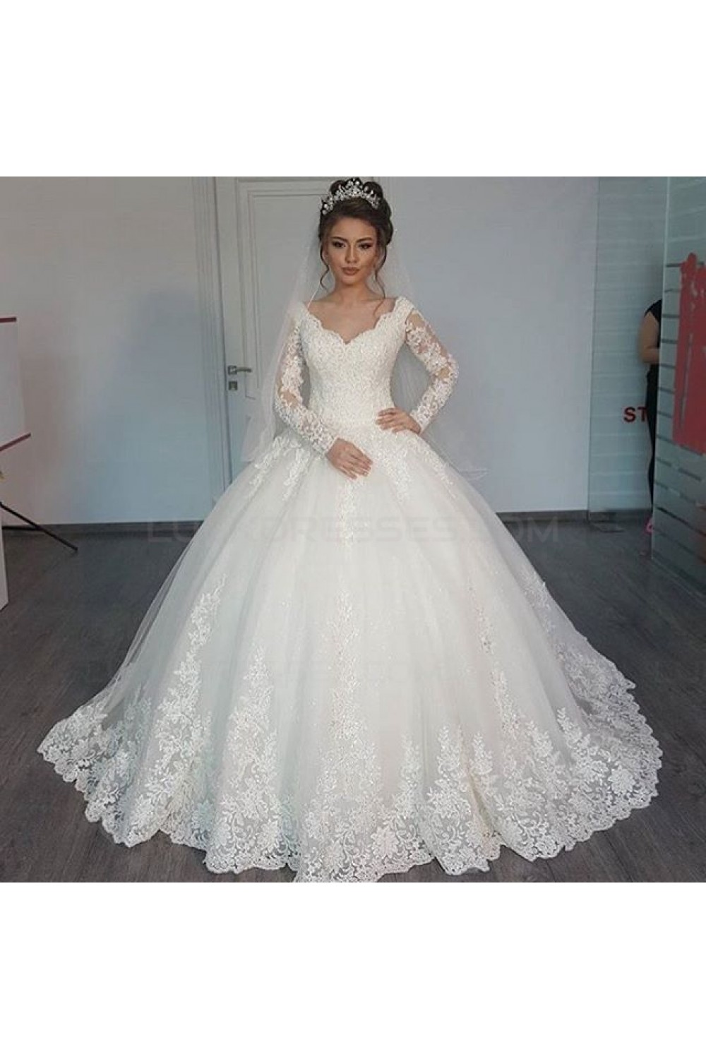 Ball Gown Long Sleeves Lace Wedding Dresses Bridal Gowns 3030073