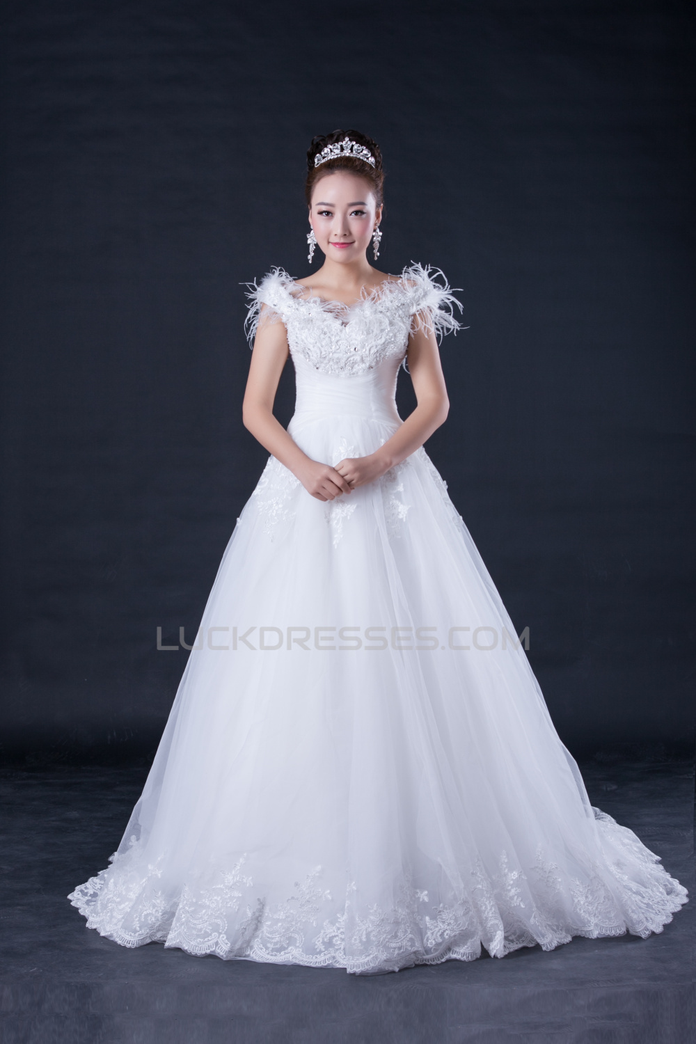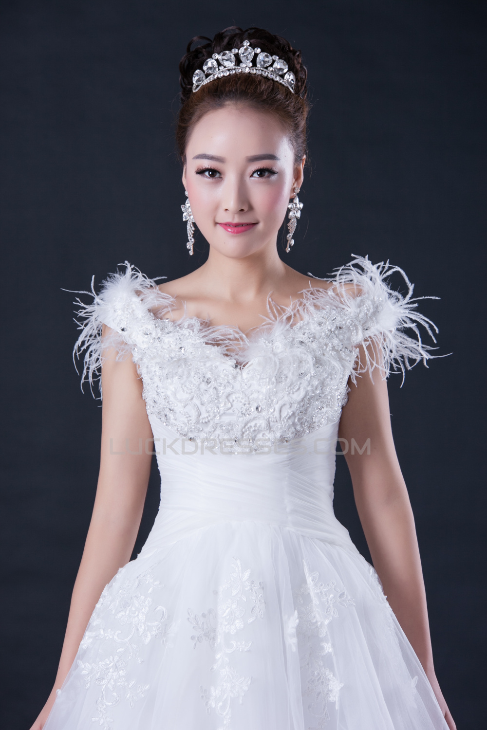 Ball Gown Off the Shoulder Beaded Lace Bridal Wedding Dresses WD010407