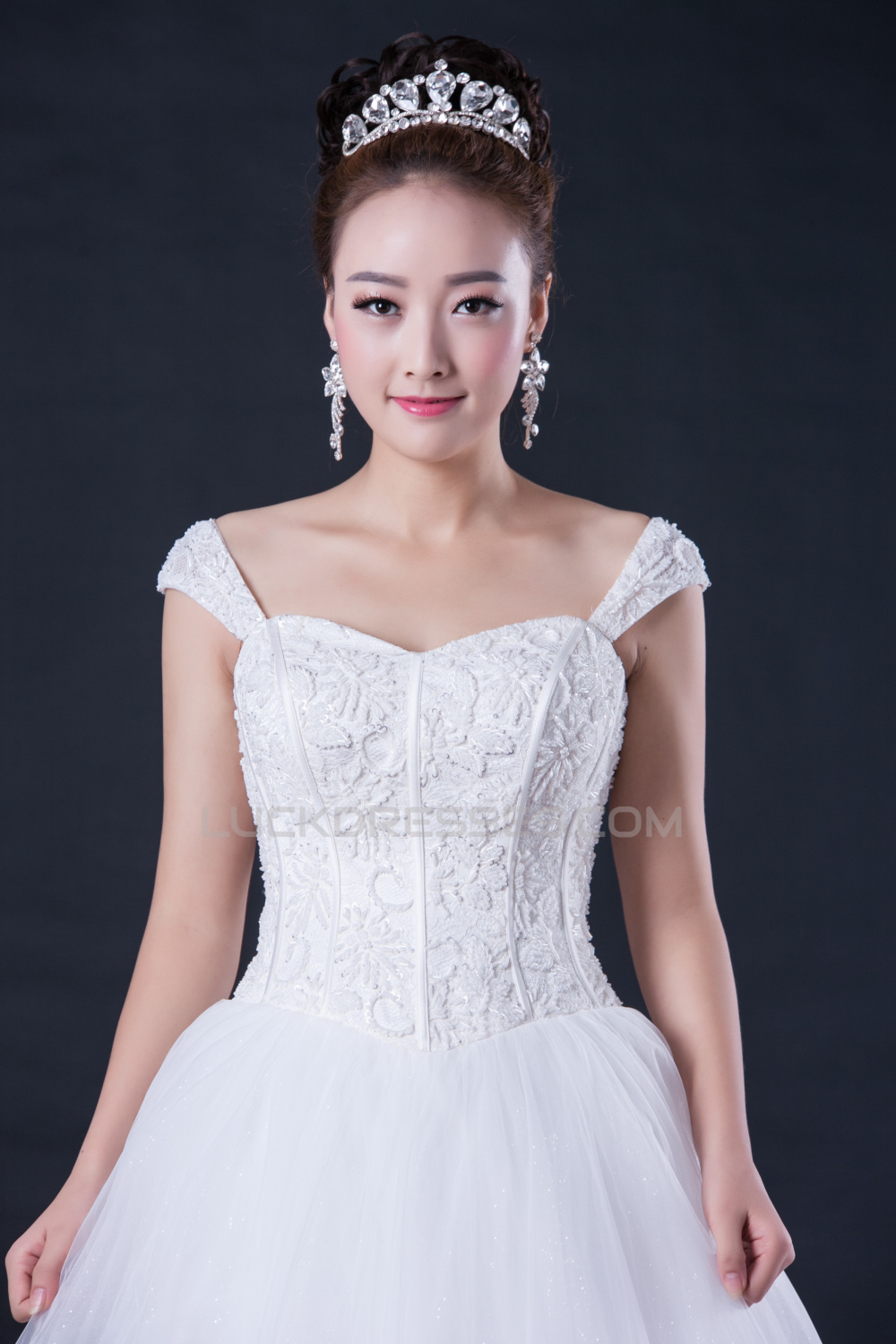 Ball Gown Off the Shoulder Beaded Lace Bridal Wedding Dresses WD010408