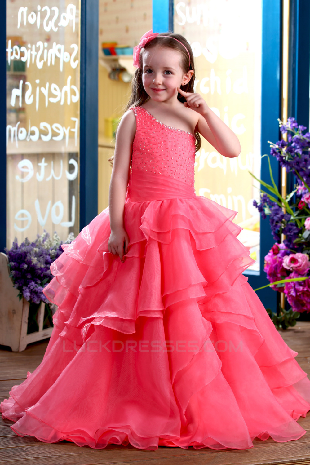 -50% Ball Gown One-Shoulder Beaded Flower Girl Dresses 2050011