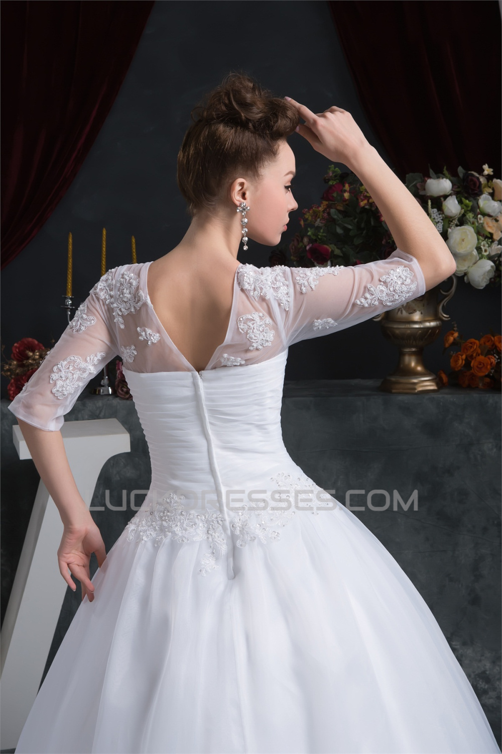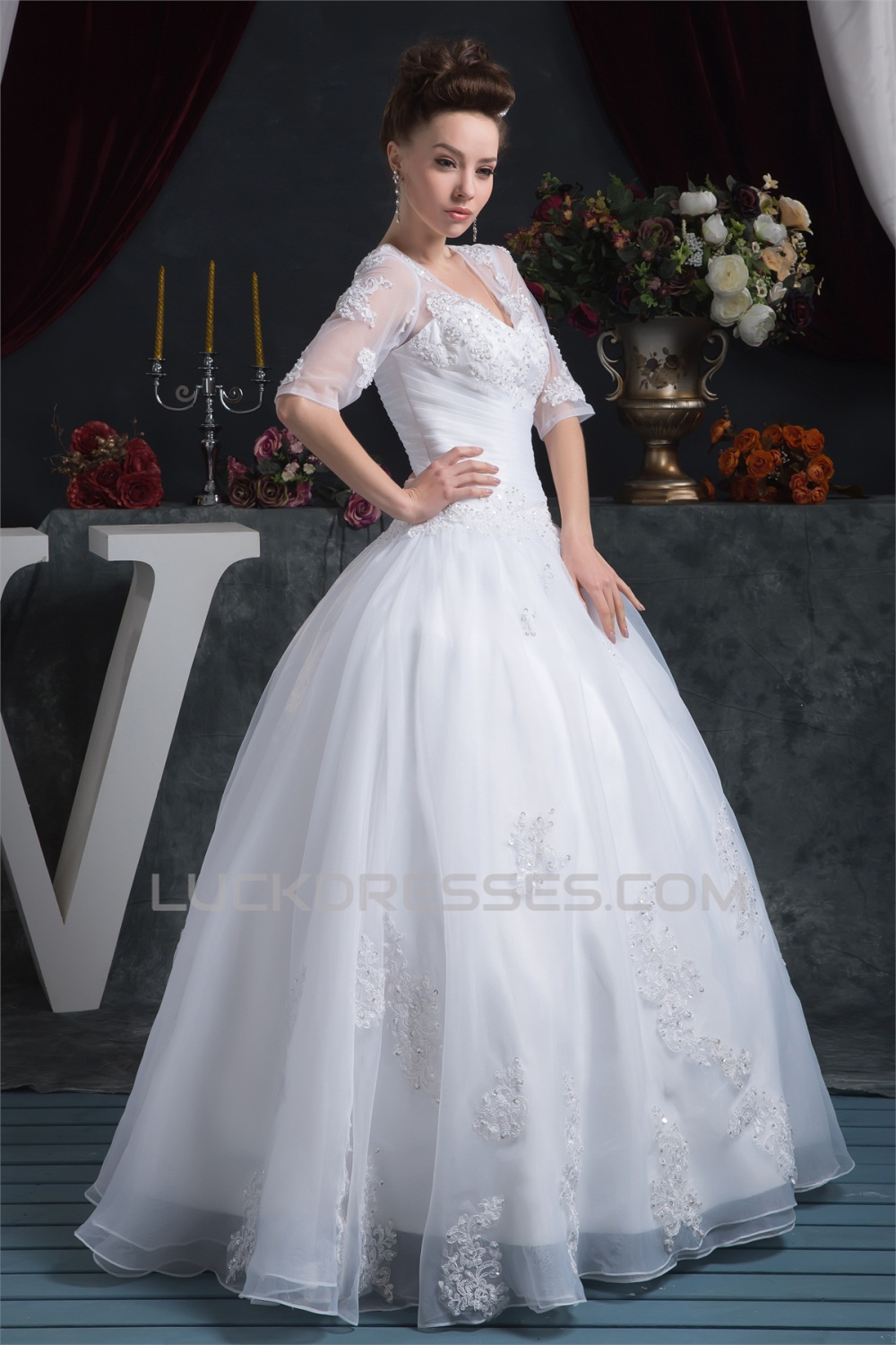 -50% Ball Gown Satin Organza V-Neck Half Elbow Sleeve Floor-Length Wedding Dresses 2030873