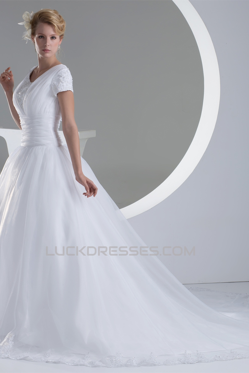 Ball Gown Short Sleeve Beaded Applique New Arrival Wedding Dresses 2030040