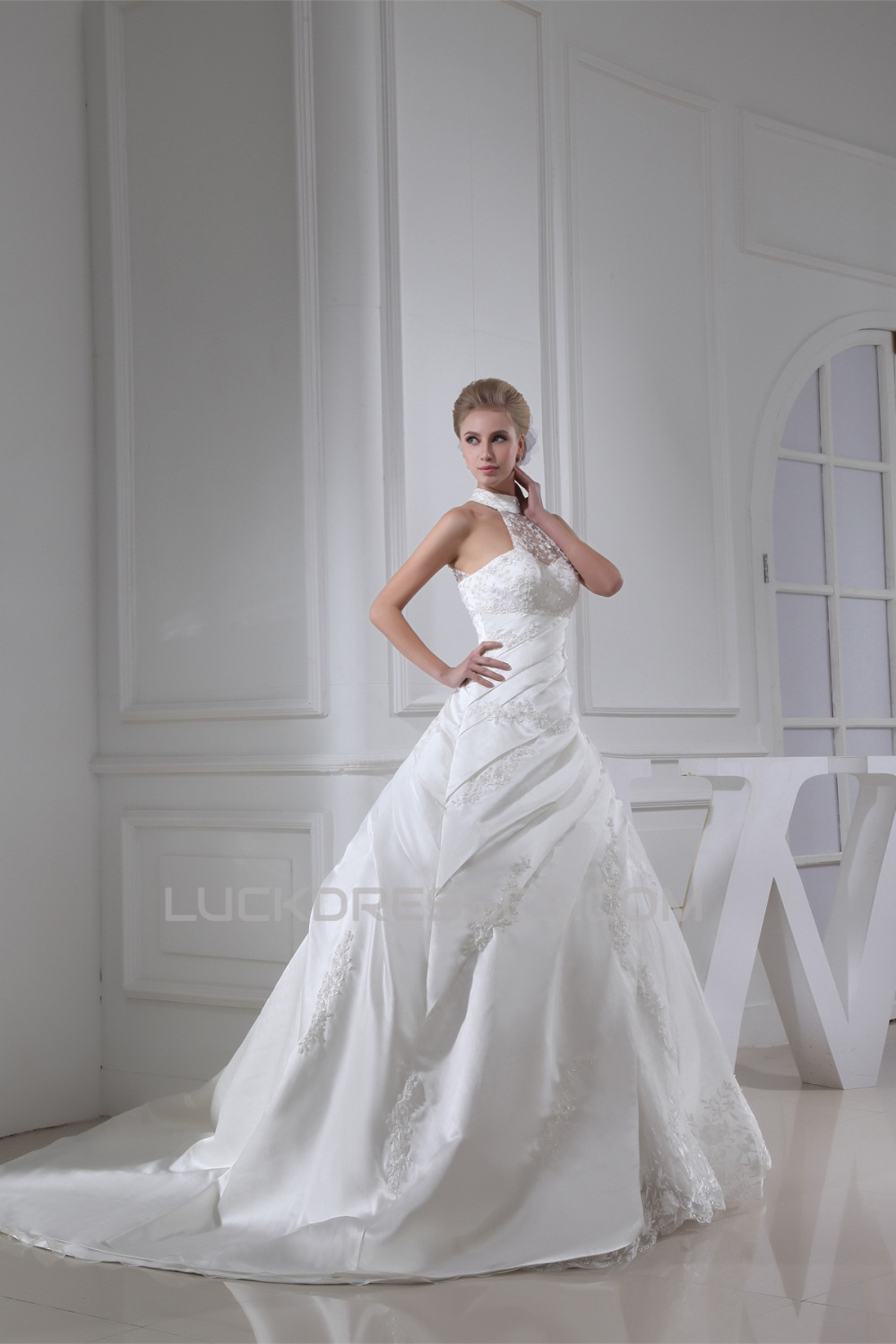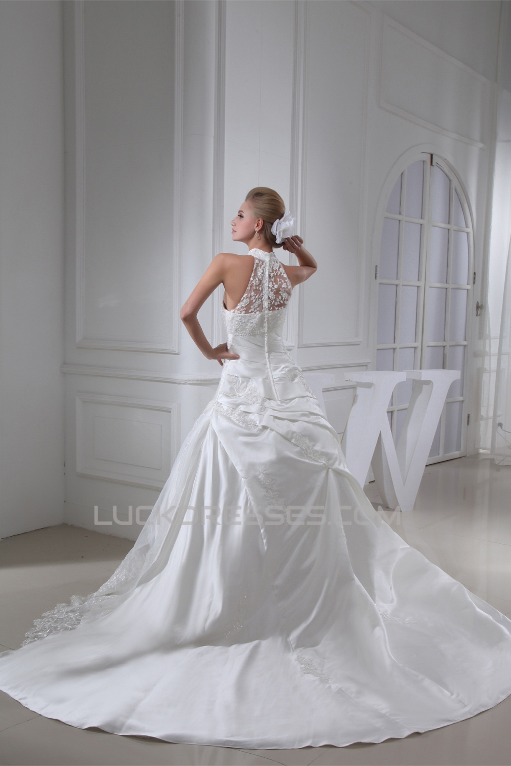 Ball Gown Sleeveless Satin Lace Fine Netting Wedding Dresses 2030025