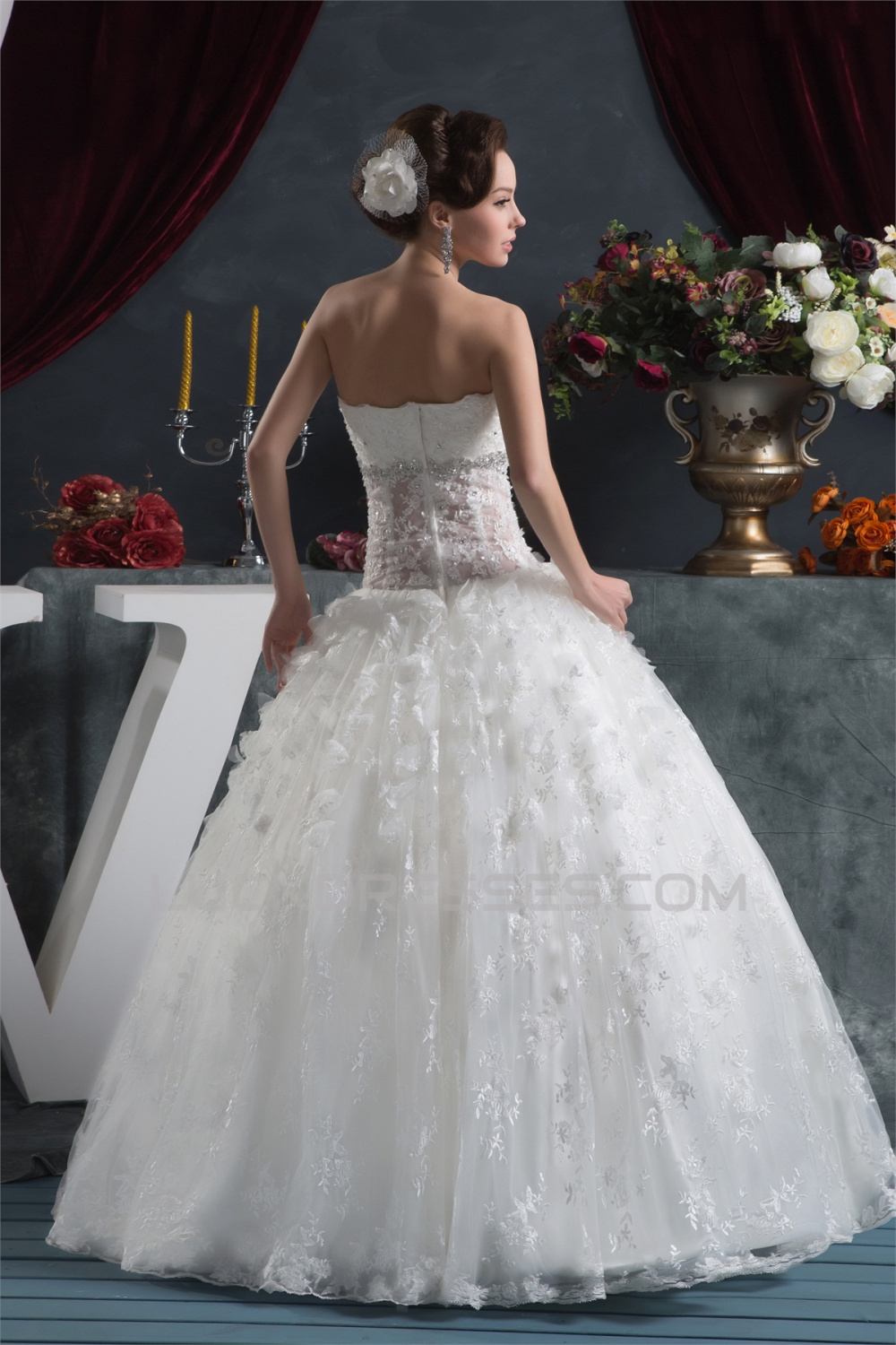 Ball Gown Sleeveless Satin Organza Fine Netting Lace Wedding Dresses 2030607