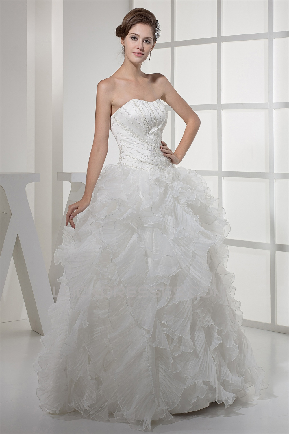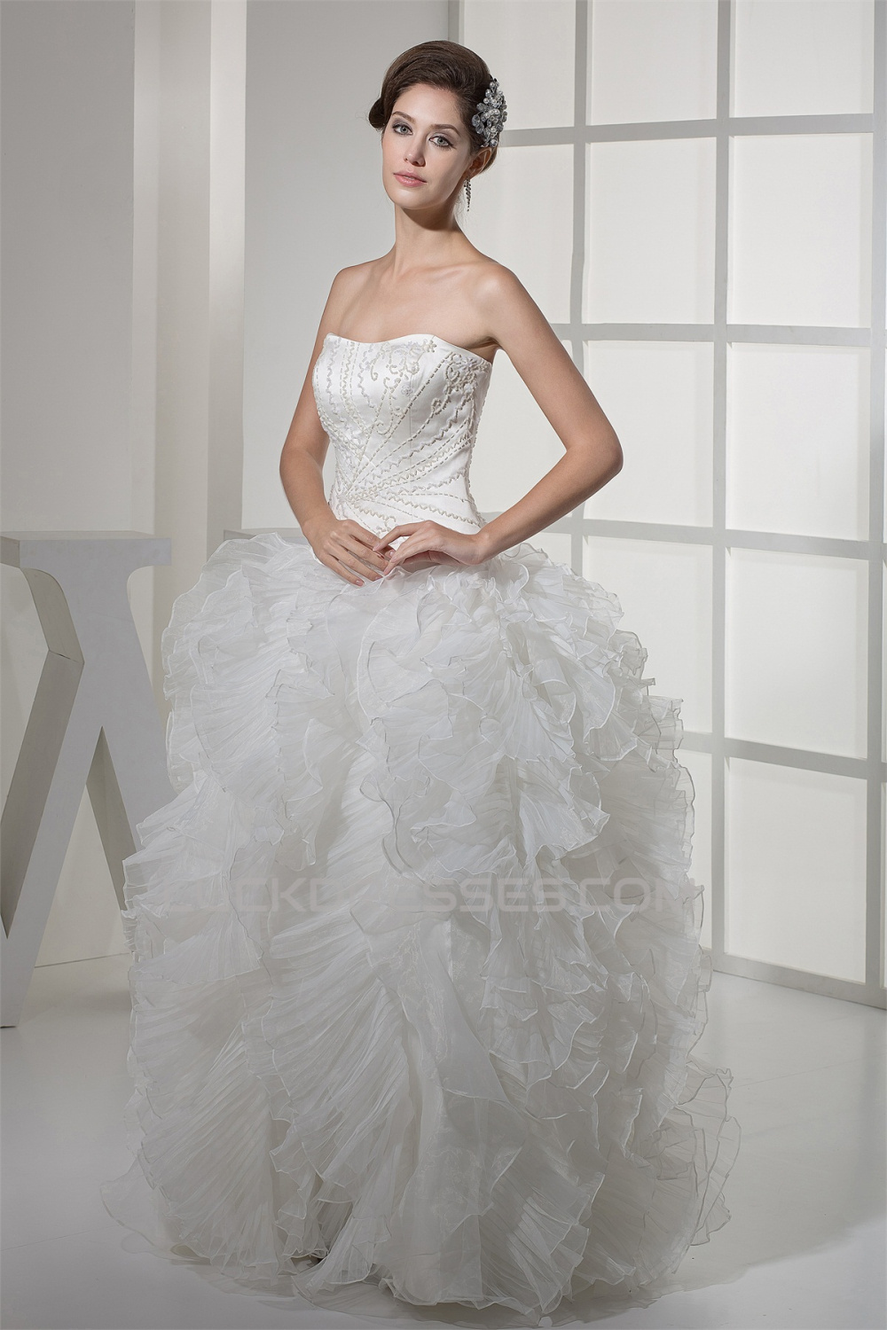 -50% Ball Gown Sleeveless Satin Organza Soft Sweetheart Beaded Wedding Dresses 2030063